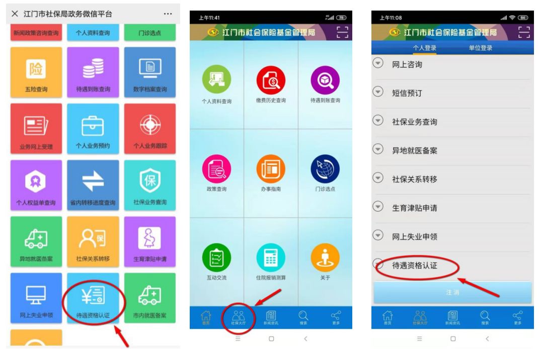 資格認(rèn)證指引:進(jìn)入“江門社保”微信公眾號-點擊 “社保服務(wù)”-進(jìn)入“社保查詢預(yù)約平臺”-點擊“待遇資格認(rèn)證”-按提示掃描下載江門社保app-登錄(輸入身份證號碼、密碼:初始888888、社保卡金融賬戶后6位數(shù))-點擊“待遇資格認(rèn)證”-上傳身份證正反面-然后視頻拍照-點擊“上傳”。