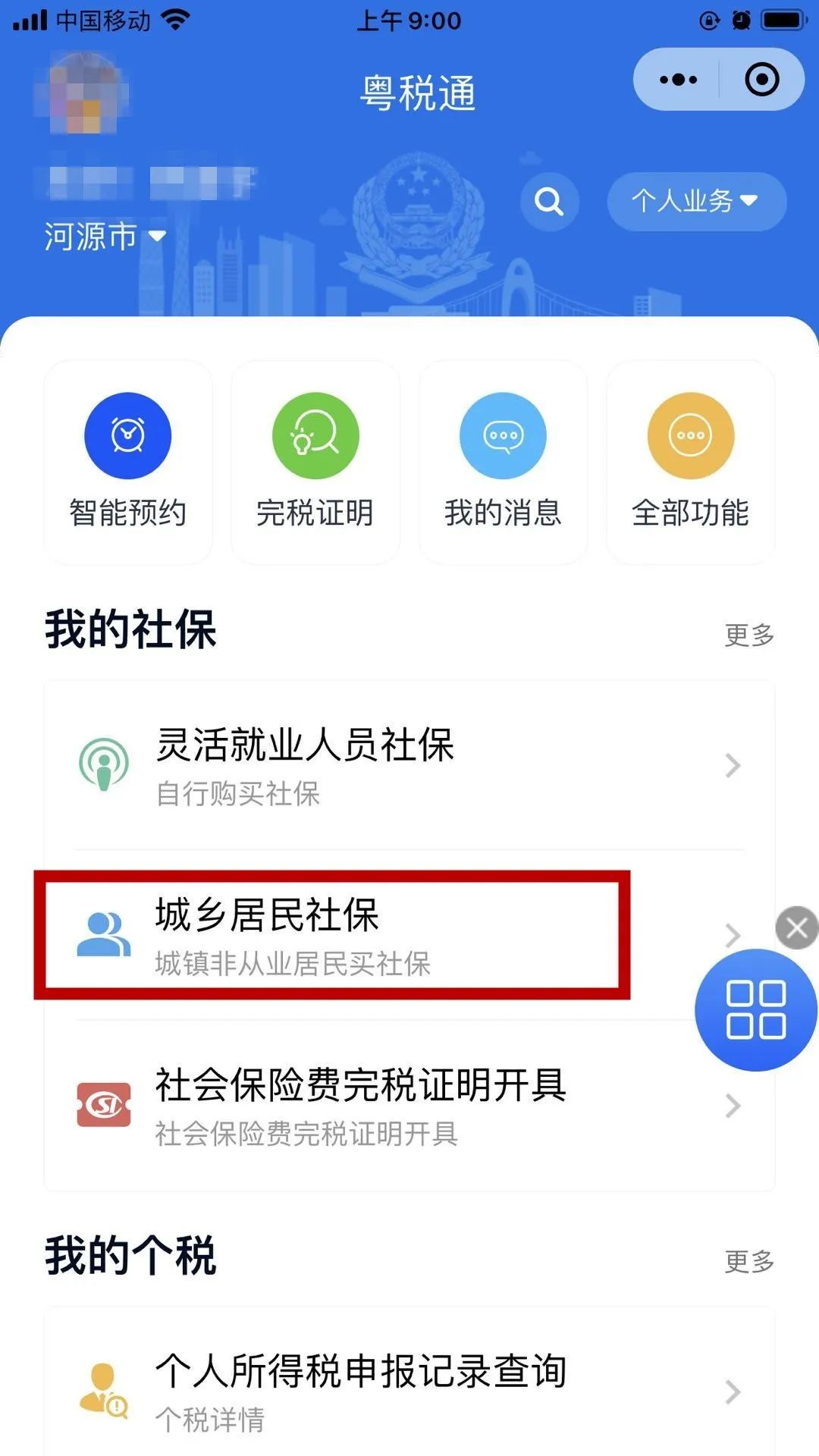 實名認證后,然后選擇“城鄉居民社保”。