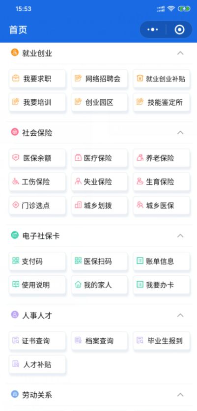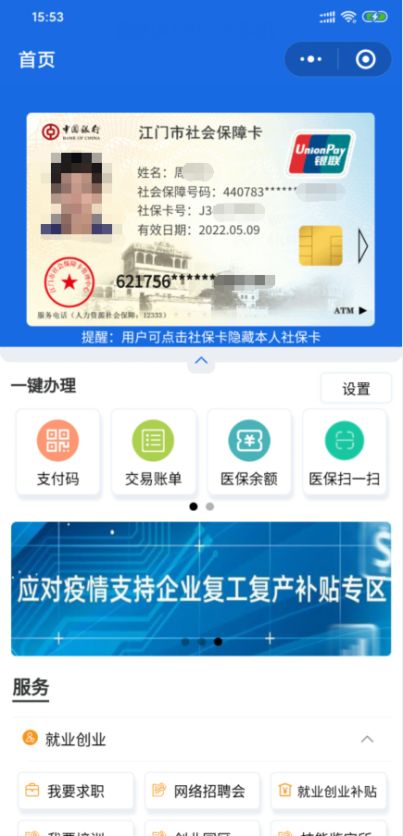 升級后的“五邑人社”小程序功能更加豐富。除原有的電子社保卡應用外,增加“就業創業”、“社會保險”、“人事人才”、“勞動關系”等服務專欄。