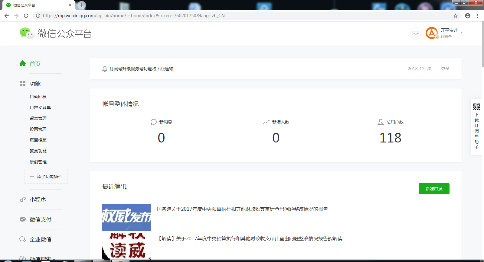 “開平審計”微信公眾號共發布微信47條。
