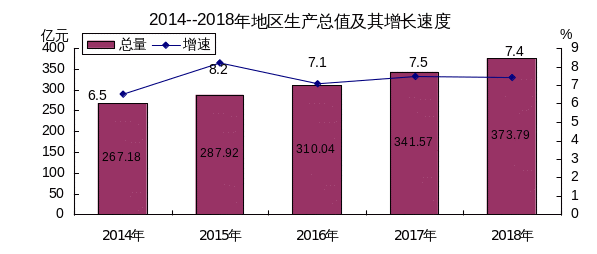 開平市二〇一八年 國民經濟和社會發展統計公報 (2019年5月15日) 開平市統計局 2018年,開平市堅持以習近平新時代中國特色社會主義思想為指導,全面貫徹黨的十九大和十九屆二中、三中全會精神,深入貫徹習近平總書記重要講話精神,圍繞“產業提升、城市提質、工作提效”工作主線,全力推進融入粵港澳大灣區建設,各項工作取得新突破。 一、綜合 初步核算,2018年全市實現地區生產總值373.79億元(當年價),比上年增長7.4%。其中:第一產業增加值33.74億元,增長2.89%;第二產業增加值184.85億元,增長8.80%;第三產業增加值155.20億元,增長6.55%。第一、二、三產業增加值的比重為9.03:49.45:41.52。人均地區生產總值5.24萬元。 圖1: