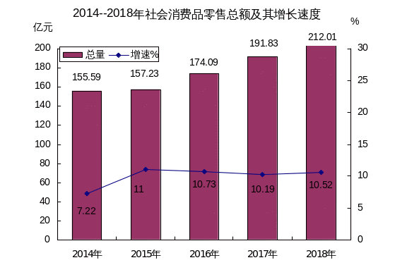 二、農業 全年實現農業總產值61.45億元,比上年增長6.32%。全年糧食作物播種面積63.17萬畝,比上年下降1.17%。其中:水稻種植面積58.7萬畝,比上年下降4.68%。 全年糧食總產量(折糧)21.13萬噸,比上年下降2.32%,其中:稻谷20.03萬噸,比上年下降5.43%。 圖2: 全市更新造林面積7.8萬畝,比上年增長63.87%;木材砍伐20.64萬立方米,比上年增長14.22%。 畜牧業肉類總產量11.39萬噸,比上年增長35.60%;全年生豬出欄量57.56萬頭,比上年下降13.92%;家禽出欄量3122.3萬只,比上年增長14.32%;禽蛋全年總產量1.11萬噸,比上年增長35.37%;水產品產量5.04萬噸,比上年下降6.15%。 三、工業和建筑業 2018年,全市規模以上工業企業291家,規模以上工業增加值比上年增長10.50%,工業總產值比上年增長13.57%。工業總產值中,按輕重工分:輕工業增長9.23%,重工業增長20.27%;按企業經濟類型分:外商及港澳臺商投資企業增長11.48%,股份制企業增長17.46%,其他經濟類型增長7.90%。 圖3: 全年規模以上工業企業銷售產值比上年增長18.19%,產品銷售率94.43%,主營業務收入比上年增長22.80%,利潤總額比上年增長20.57%。 全年具有資質等級的總承包和專業承包建筑企業完成總產值191.46億元,比上年增長8.4%。主營業務收入177.9億元,比上年增長6.8%。實現利潤總額4.20億元,比上年下降32.48%。 四、固定資產投資 全年固定資產完成投資總額292.96億元,比上年增長15.43%。其中:房地產完成投資45.00億元,比上年增長4.07%。固定資產投資中,第一產業完成投資3.43億元,比上年下降15.1%;第二產業完成投資131.36億元,比上年增長15.23%;第三產業完成投資158.17億元,比上年增長16.5%。民資投資穩定增長,全年民資直接投資174.97億元,比上年增長14.01%。 全年商品房施工面積372.29萬平方米,比上年下降15.04%;竣工面積28.16萬平方米,比上年下降51.21%;商品房銷售面積80.18萬平方米,比上年下降35.58%;商品房銷售額55.77億元,比上年下降22.31%。 五、交通運輸和郵電業 全年社會客運量3384.5萬人,比上年下降11.28%;客運周轉量77325.1萬人公里,比上年下降21.92%;港口貨物吞吐量1277.11萬噸,比上年增長18.90%。 年末市內公路通車里程182.9公里。汽車保有量11.62萬輛,比上年增長10.28%。摩托車保有量24.93萬輛,比上年增長2.30%。公共汽車擁有量218輛。 年末固定電話用戶13.42萬戶,移動電話用戶84.23萬戶。 六、國內貿易 全年社會消費品零售總額212.01億元,比上年增長10.52%。按行業分,批發和零售業實現零售額189.16億元,比上年增長10.65%;住宿和餐飲業實現零售額22.85億元,比上年增長9.44%。其中:限額以上貿易企業實現零售額40.94億元,比上年增長5.62%。 圖4: 七、對外經濟貿易和旅游業 全年海關進出口總值166.9億元,比上年增長10.1%。外貿出口總值135.1億元,比上年增長6.8%。進口總值31.8億元,比上年增長26.9%。實現對外貿易順差103.3億元。 全年新批設立外商直接投資企業21家,同比減少1家;增資企業10家次,與去年持平。合同外資金額0.20億美元,比上年下降59.76%。實際吸收外商金額0.47億美元,比上年增長35.23%。外向型企業460家,其中:三資企業428家,來料加工企業32家。 全年旅游業共接待國內外游客766.82萬人次,比上年增長12.11%,其中:國內旅游者658.74萬人次,比上年增長9.56%;國際旅游者108.08萬人次,比上年增長30.59%;實現旅游總收入92.02億元,比上年增長21.03%。全市擁有星級酒店2家,其中:五星級酒店1家,三星級1家。旅游飯店出租率65.47%。 八、財政金融 全年地方公共財政預算收入26.08億元,比上年增長11.80%;地方公共財政預算支出39.40億元,比上年增長8.03%。 年末金融機構存款余額607.10億元,比上年增長5.39%。其中:城鄉居民儲蓄存款余額431.56億元,比上年增長8.43%。各項貸款余額345.96億元,比上年增長10.22%。僑匯收入0.36億美元,比上年上升1.66%。 九、科學技術和教育 全年科技領域獲得江門市一等獎1個,三等獎1個。專利申請量2383件,專利授權量1506件。國家級高新技術企業119家。工程技術研究中心219家,其中:省級35家、地市級184家。全市擁有各類專業技術人員2.81萬人。 年末全市有中小學91所,其中完(高、職)中10所,初中19所,小學58所,九年一貫制學校4所,全市中小學在校生共124144人,其中小學生54820人,初中生24179人,高中階段在校生19637人。特殊學校1所,在校生123人。開放大學1所,在校本科生318人,大專學生884人。幼兒園99所,在園兒童25385人。小學適齡兒童入學率100%,小學畢業生入學率100%,非正常流動率為0%;15周歲人口初等教育完成率100%,與上年持平;17周歲人口中等教育完成率99.76%,比上年提高0.03個百分點。初中入學率100%,與上年持平;非正常流動率0.48%,比上年降低0.01個百分點。三類殘疾兒童少年入學率100%,與上年持平。“普九”五率連續29年達到國家和省規定的標準要求。全市初中畢業生7759人,升學率為100%,比上年提高0.87個百分點,完成江門市下達的“普高”指標。全市參加高考人數5333人,入圍人數4868人,其中本科入圍人數2395人;報考入圍率達91.28%,其中本科入圍率達44.90%。全年投入5412.54萬元,新建、擴建、改建校舍5.59萬平方米。 十、文化、衛生和體育 年末全市有文化館1間;文化站15個,村文化室226個;博物館1間;美術館1間;圖書館16間,圖書總藏書量134.7萬冊,其中:鎮圖書館藏書量27.8萬冊;市(鎮)影劇院6座。廣播電視臺1間,有線電視轉播頻道154個,廣播電臺播出頻道2個。 年末擁有衛生機構25個。其中:醫院6家,衛生院14家;婦