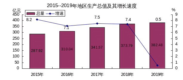 二、農業 全年實現農業總產值65.04億元,比上年增長5.84%。全年糧食作物播種面積63.27萬畝,比上年增長0.16%。其中:水稻種植面積58.18萬畝,比上年下降0.89%。 全年糧食總產量(折糧)21.13萬噸,與上年持平,其中:稻谷19.85萬噸,比上年下降0.90%。 圖2: 全市更新造林面積5.71萬畝,比上年下降26.79%;木材砍伐19.44萬立方米,比上年下降5.81%。 畜牧業肉類總產量9.47萬噸,比上年下降16.86%;全年生豬出欄量60.98萬頭,比上年增長5.94%;家禽出欄量3415.15萬只,比上年增長9.38%;禽蛋全年總產量1.1萬噸,比上年下降0.90%;水產品產量5.3萬噸,比上年增長5.16%。 三、工業和建筑業 2019年,全市規模以上工業企業309家,規模以上工業增加值比上年下降16.20%,工業總產值比上年下降16.03%。工業總產值中,按輕重工分:輕工業下降19.15%,重工業下降11.62%;按企業經濟類型分:外商及港澳臺商投資企業下降5.16%,股份制企業下降27.90%,其他經濟類型下降5.80%。 圖3: 全年規模以上工業企業銷售產值比上年下降17.63%,產品銷售率92.72%,主營業務收入比上年下降19.38%,利潤總額比上年下降7.57%。 全年具有資質等級的總承包和專業承包建筑企業完成總產值191.42億元,比上年增長0.01%。主營業務收入164.13億元,比上年下降7.74%。實現利潤總額4.95億元,比上年增長17.86%。 四、固定資產投資 全年固定資產投資比上年下降7.4%。其中:房地產投資比上年增長80.30%。固定資產投資中,第一產業投資比上年增長18.54%;第二產業投資比上年下降27.18%;第三產業投資比上年增長8.46%。全年民資投資比上年下降5.77%。 全年商品房施工面積494.97萬平方米,比上年增長32.24%;竣工面積32.53萬平方米,比上年增長15.51%;商品房銷售面積87.91萬平方米,比上年增長9.64%;商品房銷售額61.8億元,比上年增長10.82%。 五、交通運輸和郵電業 全年社會客運量3158.8萬人,比上年下降6.67%;客運周轉量64767.3萬人公里,比上年下降16.24%;港口貨物吞吐量458.17萬噸,比上年下降64.12%。 年末市內公路通車里程1609.3公里。汽車保有量12.50萬輛,比上年增長7.52%。摩托車保有量16.39萬輛,比上年下降34.27%。公共汽車擁有量259輛。 年末固定電話用戶10.15萬戶,移動電話用戶79.74萬戶。 六、國內貿易 全年社會消費品零售總額226.85億元,比上年增長7.00%。按行業分,批發和零售業實現零售額202.40億元,比上年增長7.00%;住宿和餐飲業實現零售額24.45億元,比上年增長6.97%。其中:限額以上貿易企業實現零售額43.27億元,比上年下降7.33%。 圖4: 七、對外經濟貿易和旅游業 全年海關進出口總值152.6億元,比上年下降8.6%。外貿出口總值128.8億元,比上年下降4.7%。進口總值23.7億元,比上年下降25.4%。實現對外貿易順差105.1億元。 全年新批設立外商直接投資企業28家,同比增加7家;外商投資增資企業9家次,比去年減少1家次。合同外資金額0.65億美元,比上年增長226.95%。實際吸收外商金額0.51億美元,比上年增長7.56%。外向型企業325家,其中:三資企業311家,來料加工企業14家。 全年旅游業共接待國內外游客865.56萬人次,比上年增長12.88%,其中:國內旅游者737.53萬人次,比上年增長11.96%;國際旅游者128.03萬人次,比上年增長18.46%;實現旅游總收入111.45億元,比上年增長21.11%。全市擁有星級酒店2家,其中:五星級酒店1家,三星級1家。旅游飯店出租率65.65%。 八、財政金融 全年地方公共財政預算收入27.95億元,比上年增長7.17%;地方公共財政預算支出51.16億元,比上年增長29.86%。 年末金融機構存款余額661.83億元,比上年增長9.01%。其中:城鄉居民儲蓄存款余額470.98億元,比上年增長9.13%。各項貸款余額402.58億元,比上年增長16.37%。僑匯收入0.26億美元,比上年下降27.22%。 九、科學技術和教育 全年專利申請量2460件,專利授權量1713件。國家級高新技術企業132家。全市工程技術研究中心省級有49家、地市級有184家。全市擁有各類專業技術人員2.85萬人。 年末全市有中小學91所,其中完(高、職)中10所,初中19所,小學58所,九年一貫制學校4所,全市在校生共124043人,其中小學生55337人,初中生23992人,高中階段在校生19516人。特殊學校1所,在校生135人。開放大學1所,在校本科生285人,大專學生848人。幼兒園100所,在園兒童25063人。小學適齡兒童入學率100%,小學畢業生入學率100%,非正常流動率為0%;15周歲人口初等教育完成率100%,與上年持平;17周歲人口中等教育完成率99.78%,比上年提高0.02個百分點。初中入學率100%,與上年持平;非正常流動率0.51%,比上年提高0.03個百分點。三類殘疾兒童少年入學率100%,與上年持平。“普九”五率連續30年達到國家和省規定的標準要求。全市初中畢業生7714人,升學率為99.52%,比上年下降0.48個百分點,完成江門市下達的“普高”指標。全市參加高考人數5765人,入圍人數5404人,其中本科入圍人數3137人;報考入圍率達93.73%,其中本科入圍率達54.41%。全年投入3318.4萬元,新建、擴建、改建校舍1.43萬平方米。 十、文化、衛生和體育 年末全市有文化館1間;文化站15個,村文化室269個;博物館1間;美術館1間;圖書館21間,圖書總藏書量186萬冊,其中:鎮圖書館藏書量37萬冊;市(鎮)影劇院6座。廣播電視臺1間,有線電視轉播頻道154個,廣播電臺播出頻道1個。 年末擁有衛生機構25個。其中:醫院6家,衛生院14家;婦幼保健院1家;專科防治所、站2家;疾病預防控制中心1個;衛生監督所1家。病床床位2901張,其中:醫院2415張,衛生院336張。衛生技術人員3292人,其中:醫生1096人,衛生