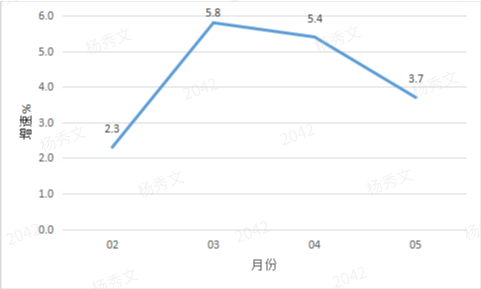 2023年1-5月開平市經(jīng)濟運行簡況 1-5月,全市主要經(jīng)濟指標運行簡況如下: 一、工業(yè)生產(chǎn) 1-5月,開平規(guī)模以上工業(yè)企業(yè)累計完成工業(yè)增加值51.80億元,同比增長3.7%。 分經(jīng)濟類型看,股份制企業(yè)增長6.9%;外商及港澳臺商投資企業(yè)增長1.3%;私營企業(yè)增長6.4%。分門類看,采礦業(yè)增加值增長23.6%,制造業(yè)增加值增長3.8%,電力、熱力、燃氣及水生產(chǎn)和供應業(yè)增加值下降2.9%。 1-5月全市工業(yè)用電量下降1.9%。 圖一 2023年2月以來開平市規(guī)模以上工業(yè)增加值增速 二、投資 1-5月,全市完成固定資產(chǎn)投資同比下降1.0%。從分經(jīng)濟類型看,國有投資下降7.2%;民間投資下降5.2%。分產(chǎn)業(yè)看,第一產(chǎn)業(yè)投資下降53.9%;第二產(chǎn)業(yè)投資增長35.0%,其中工業(yè)投資增長35.0%;第三產(chǎn)業(yè)投資下降25.3%,其中房地產(chǎn)投資下降4.5%。 三、消費市場 1-5月,我市完成社會消費品零售總額72.34億元,同比增長3.2%。 圖二 2023年2月以來開平市社會消費品零售總額增速 四、財政收入 1-5月,全市實現(xiàn)地方一般公共預算收入11.31億元,同比增長3.6%,其中稅收收入7.15億元,同比增長31.5%。 五、金融市場 1-5月,全市金融機構(gòu)本外幣各項存款余額905.66億元,同比增長13.6%;本外幣各項貸款余額633.01億元,同比增長21.5%。全市金融機構(gòu)人民幣各項存款余額885.43億元,同比增長14.0%;人民幣各項貸款余額631.25億元,同比增長21.6%。 六、外貿(mào)進出口 1-5月,全市外貿(mào)進出口總額60.8億元,同比下降15.3%。其中,進口4.9億元,同比下降13.0%;出口55.9億元,同比下降15.5%。