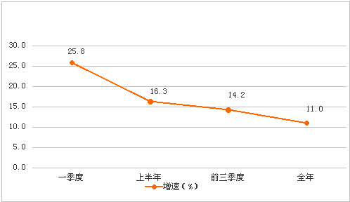 一、利潤繼續(xù)保持兩位數(shù)增長。2016年,廣東規(guī)模以上工業(yè)企業(yè)實現(xiàn)利潤總額8025.42億元,比上年增長11.0%,連續(xù)11個月兩位數(shù)增長,但分別比一季度、上半年、前三季度回落14.8個、5.3個和3.2個百分點,呈現(xiàn)逐季放緩趨勢。