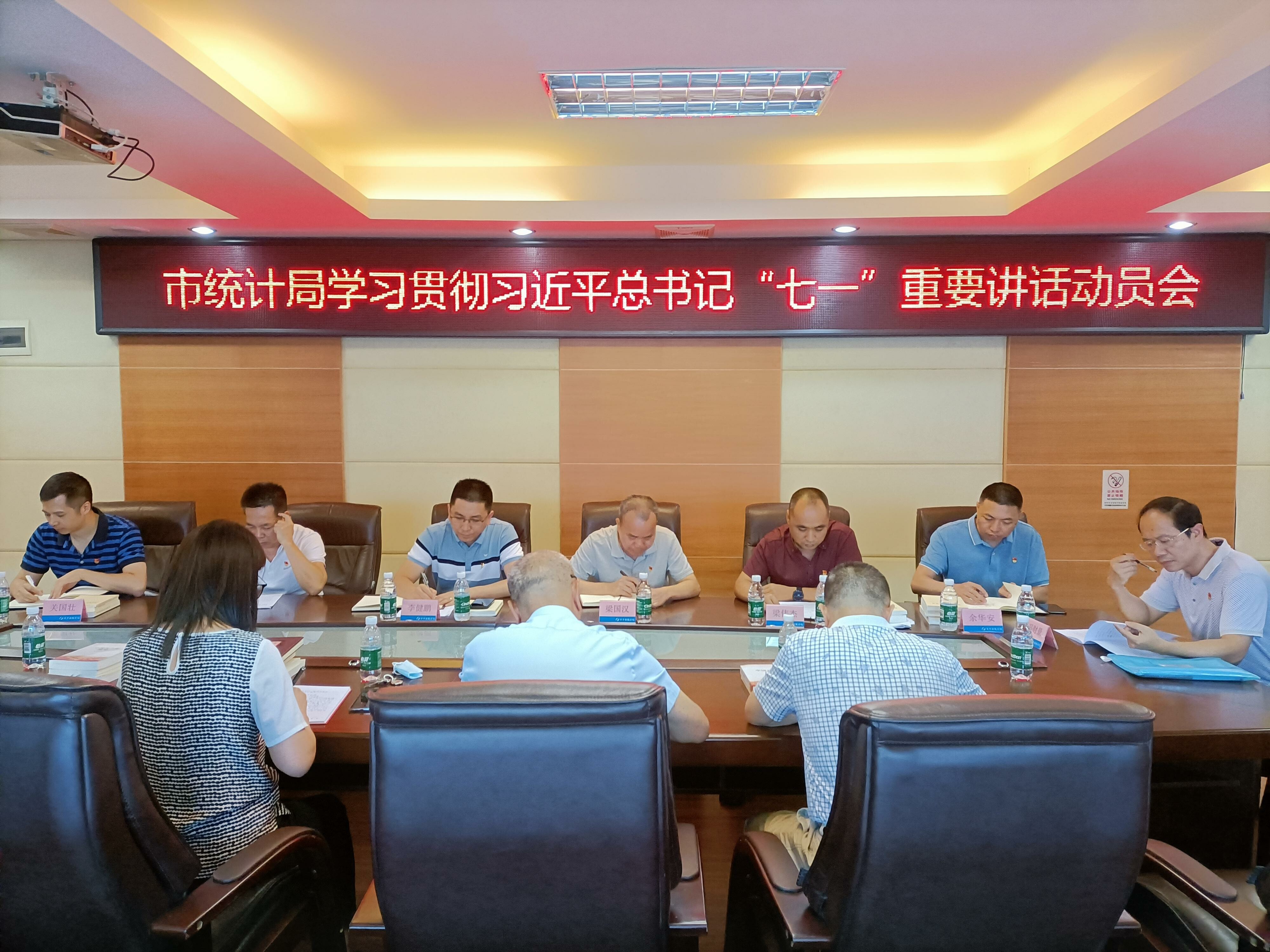市統計局召開學習貫徹習近平總書記“七一”重要講話動員會 7月9日,市統計局召開學習貫徹習近平總書記“七一”重要講話動員會,傳達學習習近平總書記在慶祝中國共產黨成立100周年大會上的重要講話精神,以及全省、江門、開平市干部動員大會精神,動員全局上下深入學習貫徹習近平總書記“七一”重要講話精神,切實把思想和行動統一到習近平總書記重要講話精神上來,不忘初心、牢記使命,堅定理想信念,踐行黨的宗旨,加快推進統計現代化改革,為推進全市經濟社會發展貢獻統計智慧和力量。局全體黨員同志參加會議。市委黨史學習教育第五巡回指導組列席會議。 局黨組書記、局長李健鵬同志作動員講話時指出,習近平總書記在慶祝中國共產黨成立100周年大會上的重要講話,深情回顧中國共產黨百年奮斗的光輝歷程,高度評價一百年來中國共產黨團結帶領中國人民創造的偉大成就,莊嚴宣告實現了第一個百年奮斗目標、在中華大地上全面建成了小康社會,精辟概括了偉大建黨精神,全面總結以史為鑒、開創未來的“九個必須”,號召全體中國共產黨黨員在新的趕考之路上努力為黨和人民爭取更大光榮,體現了深遠的戰略思維、強烈的歷史擔當、真摯的為民情懷,是一篇馬克思主義的綱領性文獻,為全黨全國各族人民向第二個百年奮斗目標邁進指明了前進方向、提供了根本遵循。 就學習貫徹好習近平總書記“七一”重要講話精神,李健鵬同志強調兩方面意見。 一方面,提高政治站位,深入領會習近平總書記“七一”重要講話的重大意義。習近平總書記“七一”重要講話,具有重要的政治意義、歷史意義、時代意義和現實意義,為奮進新時代、走好新征程進一步指明了前進方向、提供了根本遵循。我們要深刻把握總書記“七一”重要講話的重大意義,深入領會全面建成小康社會的歷史性成就,深入領會黨團結帶領人民不懈奮斗的光輝歷程和偉大成就,深入領會偉大建黨精神的深刻內涵和時代價值,深入領會以史為鑒、開創未來的根本要求,深入領會總書記代表黨中央發出的偉大號召,切實把思想和行動統一到總書記“七一”重要講話精神上來。 另一方面,做好部署安排,確保推動學習貫徹取得實實在在成效。一是抓好學習培訓,堅持個人學習和集體學習相結合,通過黨組帶頭學、領導解讀輔導學、全面動員廣泛學、支部牽頭深入學、黨員干部交流學、結合實際務實學等形式,強調精讀深研、學深悟透,做到入心入腦、真學真用,切實把思想和行動統一到習近平總書記重要講話精神上來;二是增強政治自覺,將學習貫徹習近平總書記“七一”重要講話同學習“四史”結合起來,同黨史學習教育結合起來,扎實開展好“我為群眾辦實事”實踐活動,推動黨史學習教育往深里走、往實里走;三是堅持知行合一,結合統計中心工作,聚力推動發展,強化工作落實,緊密聯系工作實際,用講話精神指導工作實踐,引導全局干部職工持續深入學習貫徹習近平總書記重要講話精神,不斷把學習成果轉化為干事創業的強大動力,立足崗位做貢獻,奮力譜寫統計工作新篇章。