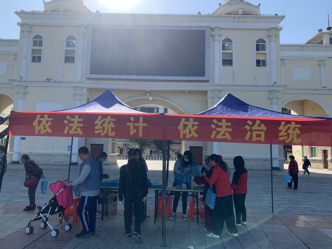 大力弘揚法治精神 全面推進依法治統為弘揚憲法精神,推進依法治統進程,12月3日,市統計局以12月4日國家憲法日和12月8日《統計法》頒布38周年紀念日為契機,在市城市廣場舉辦以“依法統計 依法治統”為主題的普法宣傳活動,宣傳人員向過往群眾派發《統計法》讀本及《不忘初心 依法統計》等宣傳單張物品,為群眾講解各大普查的主要內容、時間節點以及配合統計調查的法定義務,積極與公眾互動交流,耐心解答咨詢問題。整個宣傳活動共派發宣傳資料約200余份,營造了濃烈的統計普法氛圍。