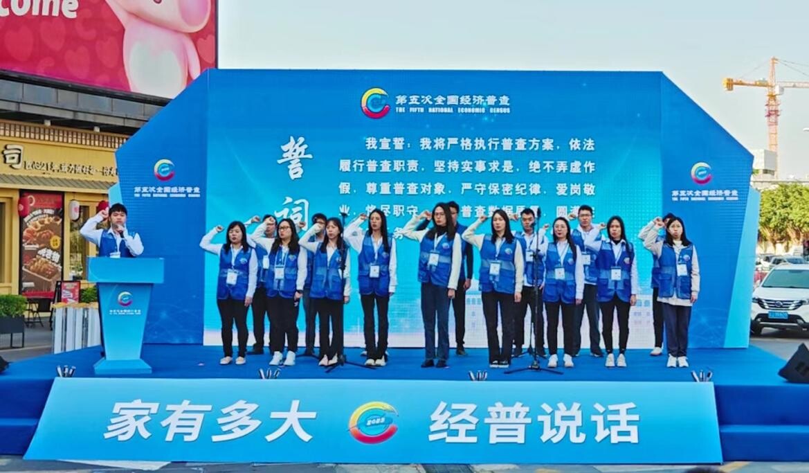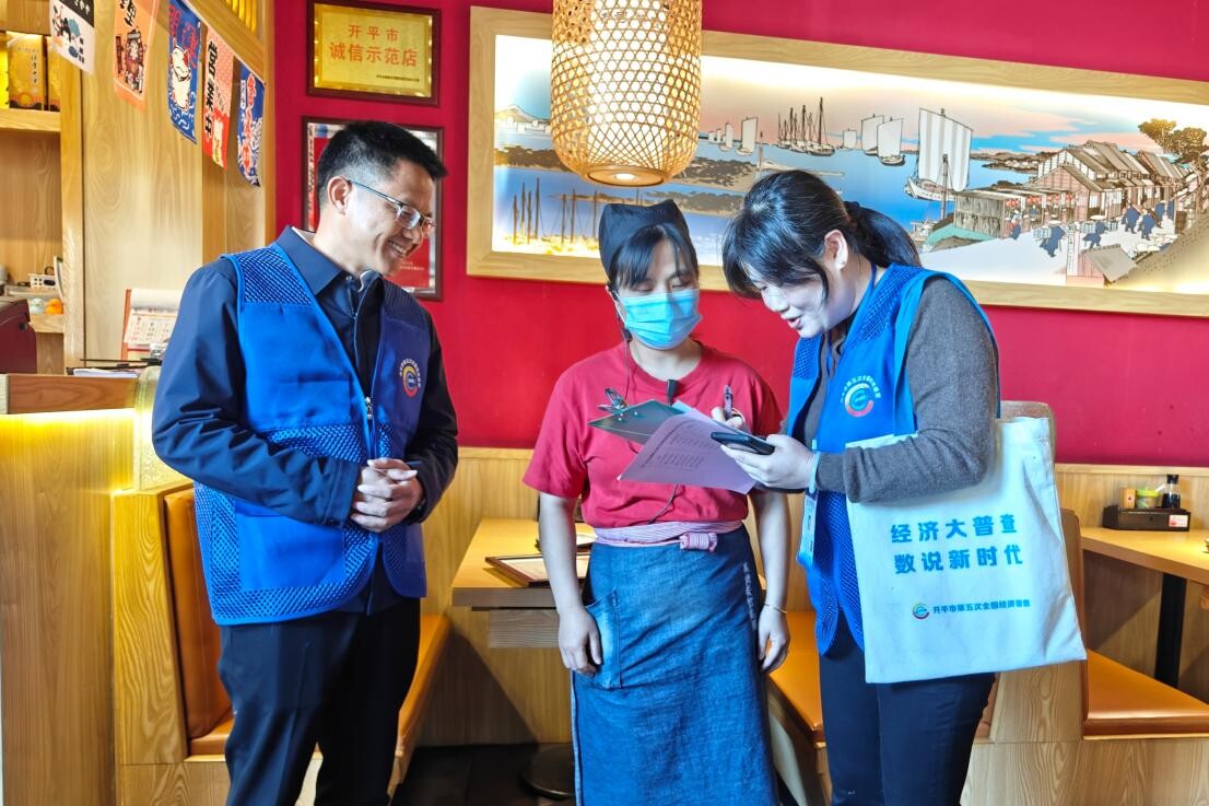 開平市“五經(jīng)普”入戶登記工作正式啟動 1月3日下午,開平市第五次全國經(jīng)濟普查(以下簡稱“五經(jīng)普”)入戶登記啟動儀式活動在市東匯城廣場舉行。江門市統(tǒng)計局副局長麥婉芬,市委常委、副市長、市第五次全國經(jīng)濟普查領(lǐng)導(dǎo)小組常務(wù)副組長余文鋒出席活動。 自籌備開展“五經(jīng)普”工作以來,開平市堅持“穩(wěn)、快、準、嚴、活”,完成了普查區(qū)劃分與建筑物信息采集、“兩員”選聘培訓(xùn)、部門數(shù)據(jù)收集整理、清查底冊編制、“地毯式”清查、查疑補漏、數(shù)據(jù)審核驗收與普查名錄編制等各項工作。目前,全市“五經(jīng)普”準備工作已經(jīng)就緒,從即日起,我市全面展開正式普查登記工作。 余文鋒指出,第五次全國經(jīng)濟普查是黨的二十大勝利召開后首次國民經(jīng)濟“全面體檢”和“集中盤點”,對于全面摸清我市經(jīng)濟社會發(fā)展狀況、加強和改善宏觀調(diào)控、服務(wù)推動高質(zhì)量發(fā)展,具有重要而深遠的意義。 活動強調(diào),全市各鎮(zhèn)街、各部門要高度重視普查登記,加強組織領(lǐng)導(dǎo),牢固樹立“一盤棋”思想,發(fā)揮好領(lǐng)導(dǎo)干部帶頭作用,統(tǒng)籌抓好落實、加強督促檢查,確保普查工作有力有序開展;全市普查“兩員”要認真做好普查登記,堅持依法普查、實事求是,嚴格按照《全國經(jīng)濟普查條例》規(guī)定和普查方案要求開展普查登記,確保登記信息準確完整、原始數(shù)據(jù)真實可信;廣大普查對象要積極支持普查登記,認真履行普查法定義務(wù),如實、按時填報經(jīng)濟普查表,不虛報、瞞報、拒報和遲報經(jīng)濟普查數(shù)據(jù),以實際行動支持配合普查工作。 啟動儀式上,來自市、鎮(zhèn)(街道)的17個普查員代表進行集體宣誓,承諾將嚴格執(zhí)行普查方案,依法履行普查職責(zé),堅持實事求是,確保普查數(shù)據(jù)質(zhì)量。 啟動儀式后,余文鋒帶隊走訪了市東匯城廣場內(nèi)的普查對象,深入普查一線,現(xiàn)場指導(dǎo)登記工作。 活動現(xiàn)場,通過懸掛“五經(jīng)普”宣傳海報,發(fā)放經(jīng)濟普查宣傳資料,開展有獎知識競答和游戲互動等方式,現(xiàn)場向參加活動的市民群眾宣傳講解普查知識,營造良好普查氛圍,提升普查對象及社會各界對經(jīng)濟普查的知曉度和配合度。