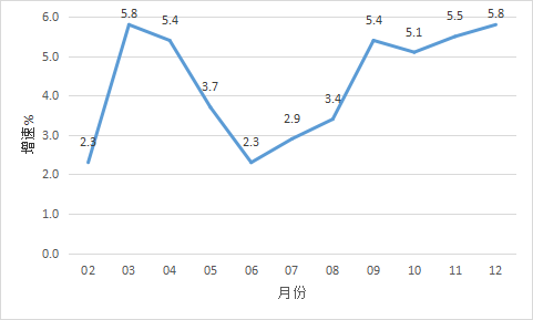 2023年開平市經(jīng)濟(jì)運(yùn)行簡況 2023年,全市主要經(jīng)濟(jì)指標(biāo)運(yùn)行簡況如下: 一、地區(qū)生產(chǎn)總值 根據(jù)江門市地區(qū)生產(chǎn)總值統(tǒng)一核算結(jié)果,2023年,開平市實(shí)現(xiàn)地區(qū)生產(chǎn)總值500.36億元,同比增長5.5%。全市三次產(chǎn)業(yè)結(jié)構(gòu)比為12.3∶49.0∶38.8。其中,第一產(chǎn)業(yè)增加值61.31億元,增長5.9%;第二產(chǎn)業(yè)增加值245.01億元,增長6.2%;第三產(chǎn)業(yè)增加值194.04億元,增長4.4%。 二、農(nóng)林牧漁業(yè) 2023年,農(nóng)林牧漁業(yè)總產(chǎn)值119.41億元,同比增長6.1%。分行業(yè)看,2023年全市農(nóng)業(yè)產(chǎn)值同比增長5.2%,林業(yè)產(chǎn)值增長13.2%,牧業(yè)產(chǎn)值增長6.9%,漁業(yè)產(chǎn)值增長6.9%,農(nóng)林牧漁專業(yè)及輔助性活動產(chǎn)值增長5.0%。 三、工業(yè)生產(chǎn) 2023年,開平規(guī)模以上工業(yè)企業(yè)累計完成工業(yè)增加值137.01億元,同比增長5.8%。 分經(jīng)濟(jì)類型看,股份制企業(yè)增長9.5%;外商及港澳臺商投資企業(yè)增長2.3%;私營企業(yè)增長5.0%。分門類看,采礦業(yè)增加值增長7.4%,制造業(yè)增加值增長5.3%,電力、熱力、燃?xì)饧八a(chǎn)和供應(yīng)業(yè)增加值增長26.1%。 2023年全市工業(yè)用電量增長5.5%。 圖一 2023年2月以來開平市規(guī)模以上工業(yè)增加值增速 四、投資 2023年,全市完成固定資產(chǎn)投資同比下降6.7%。從分經(jīng)濟(jì)類型看,國有投資下降16.6%;民間投資下降7.1%。分產(chǎn)業(yè)看,第一產(chǎn)業(yè)投資增長12.8%;第二產(chǎn)業(yè)投資增長10.7%,其中工業(yè)投資增長10.7%;第三產(chǎn)業(yè)投資下降22.8%,其中房地產(chǎn)投資下降4.5%。 五、消費(fèi)市場 2023年,我市完成社會消費(fèi)品零售總額188.99億元,同比增長1.7%。 圖二 2023年2月以來開平市社會消費(fèi)品零售總額增速 六、財政收入 2023年,全市實(shí)現(xiàn)地方一般公共預(yù)算收入31.03億元,同比增長0.8%,其中稅收收入16.90億元,同比增長8.8%。 七、金融市場 12月末,全市金融機(jī)構(gòu)本外幣各項(xiàng)存款余額934.48億元,同比增長12.0%;本外幣各項(xiàng)貸款余額675.92億元,同比增長17.5%。全市金融機(jī)構(gòu)人民幣各項(xiàng)存款余額916.28億元,同比增長12.4%;人民幣各項(xiàng)貸款余額675.03億元,同比增長18.0%。 八、外貿(mào)進(jìn)出口 2023年,全市外貿(mào)進(jìn)出口總額152.4億元,同比下降8.3%。其中,進(jìn)口12.1億元,同比下降14.7%;出口140.3億元,同比下降7.7%。