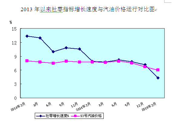 從上圖所見,我市社零指標的數據運行走勢與汽油價格波動走勢基本一致,它們兩者的相關系數達0.74,接近高度相關。在今年1-3月份,受近兩年的油價波動產生的價格差所造成的高基數及整體零售市場的疲軟影響,我市完成社會消費品零售總額37.38億元,同比增長只有4.5%,增長速度比去年同期增幅回落3.3個百分點,社零數據進一步往下探。作為拉動經濟發展三駕馬車之一的消費,其發展疲軟將影響我市整體經濟健康發展。