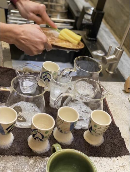 對于Project A,啡友們除了“簡約明亮,富有設計感”、“氛圍很好,咖啡的香氣很棒”之外,往往還會加一句“整潔干凈”,這也是吳偉雄以細心制作咖啡的體現。作為一店之主,他對店內衛生的把控可以說是有點“偏執”,這也和部隊里的衛生要求和習慣給予他的影響息息相關。在制作咖啡過程中,吳偉雄會根據客流量對儀器、餐具進行清洗和整理,雖然清潔會耗費較長的時間,但為了一杯品質上乘的咖啡,即使是客流量高峰的繁忙時段,他也絕對不肯妥協,總會細致地將工作臺上的每個角落都擦得干干凈凈,保證每一口咖啡的健康和安全。