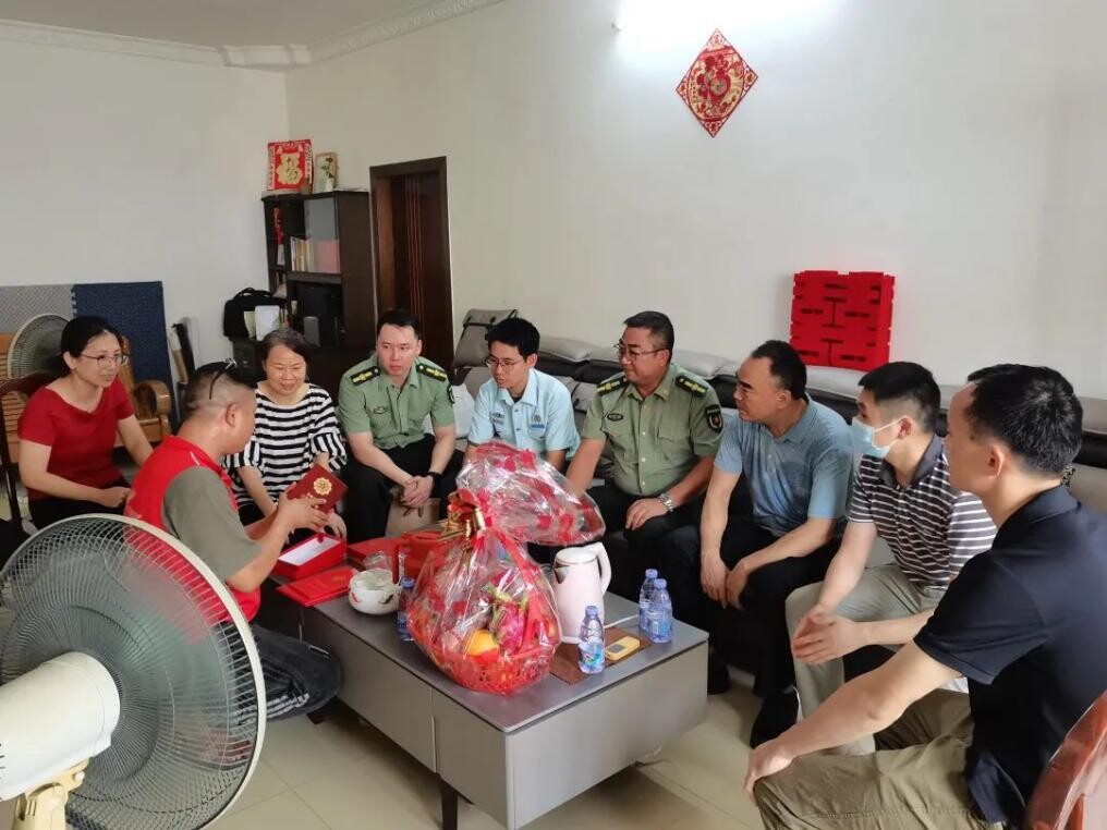 5月31日,開平市人民武裝部、市退役軍人事務局、長沙街道武裝部及退役軍人服務站一行組成報喜團,來到現役軍人陳濤家中,將三等功喜報和慰問金送到家屬手上。長沙街道黨工委委員、武裝部部長何永富為家屬戴上了“光榮軍屬”綬帶,并向他們表示熱烈祝賀和崇高敬意。接過喜報,陳濤家屬臉上洋溢著喜悅和自豪的笑容。報喜團和軍人家屬進行親切交談,詳細了解他們的身體狀況和生活情況,感謝他們為祖國培育出優秀的青年,為黨和國家做出貢獻,以實際行動為家鄉增光添彩,并鼓勵他們一如既往支持孩子安心服役、建功軍營,爭取再創佳績,同時叮囑他們有任何困難要及時向有關部門反映。
