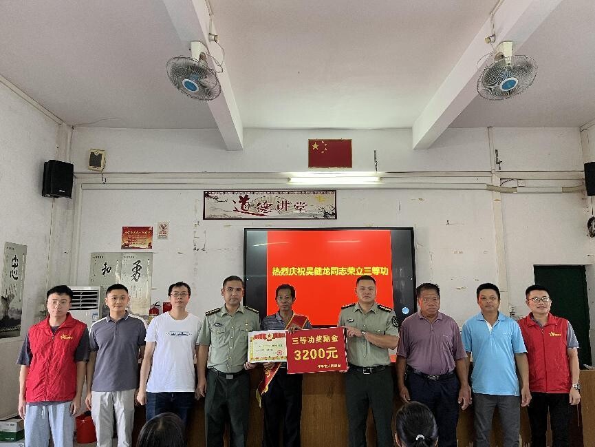 7月7日,市人武部、市退役軍人事務局和金雞鎮政府共同開展“為立功軍人家屬送喜報”活動,給軍人家屬送去了立功受獎喜報和獎勵金,對吳健龍同志在部隊取得的榮譽表示祝賀。