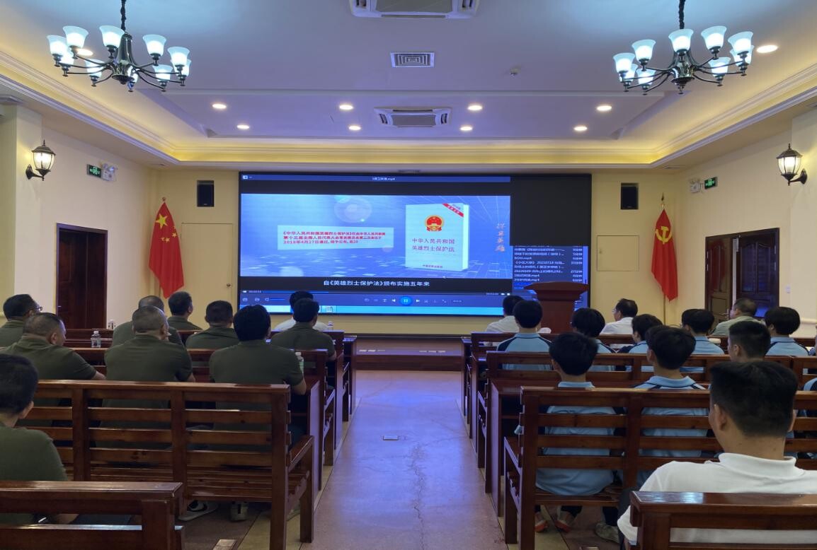 揭牌儀式后,全體人員觀看了《中華人民共和國英雄烈士保護法》宣傳教育片,了解英雄內涵,厚植愛黨、愛國情感。