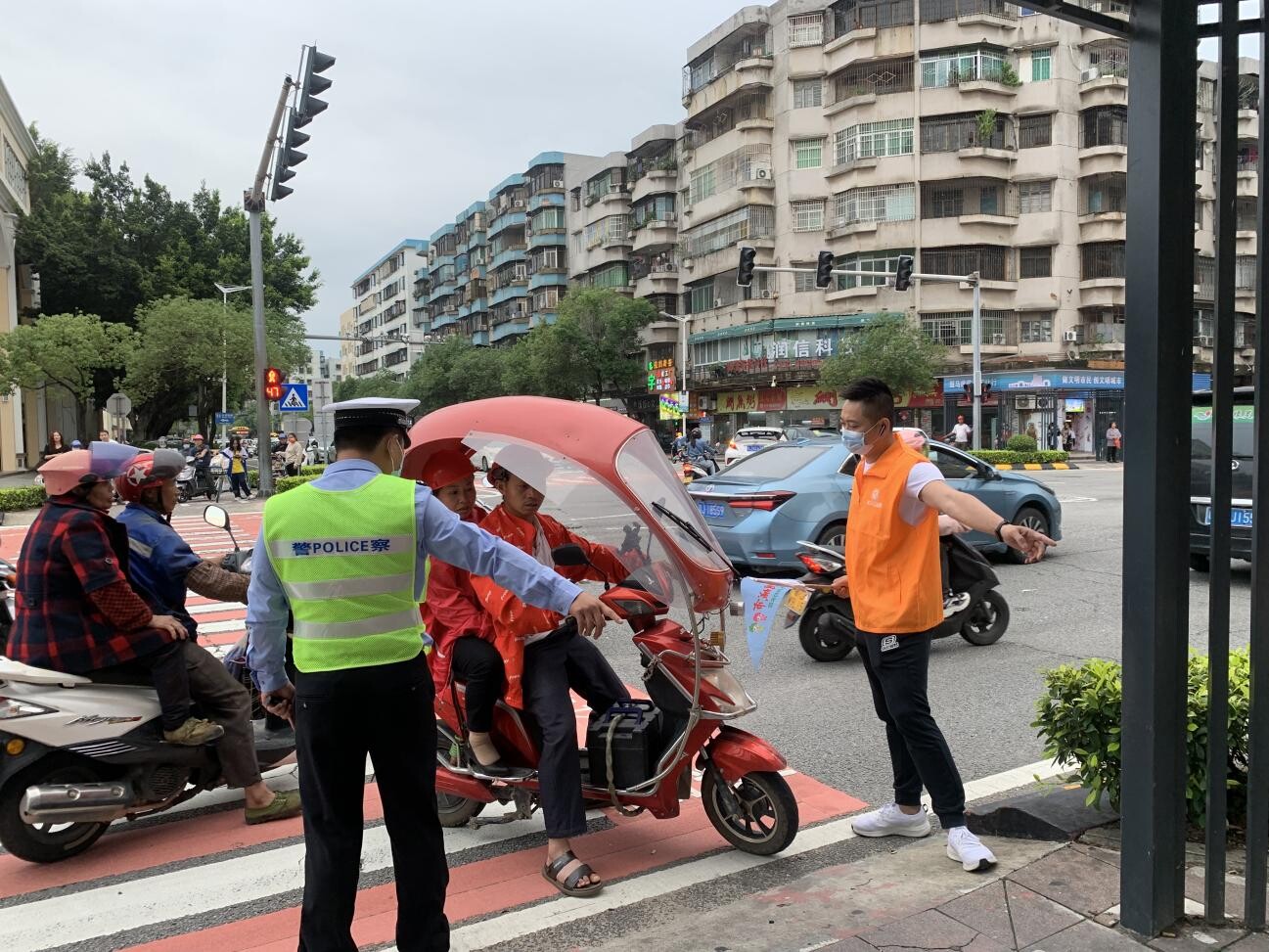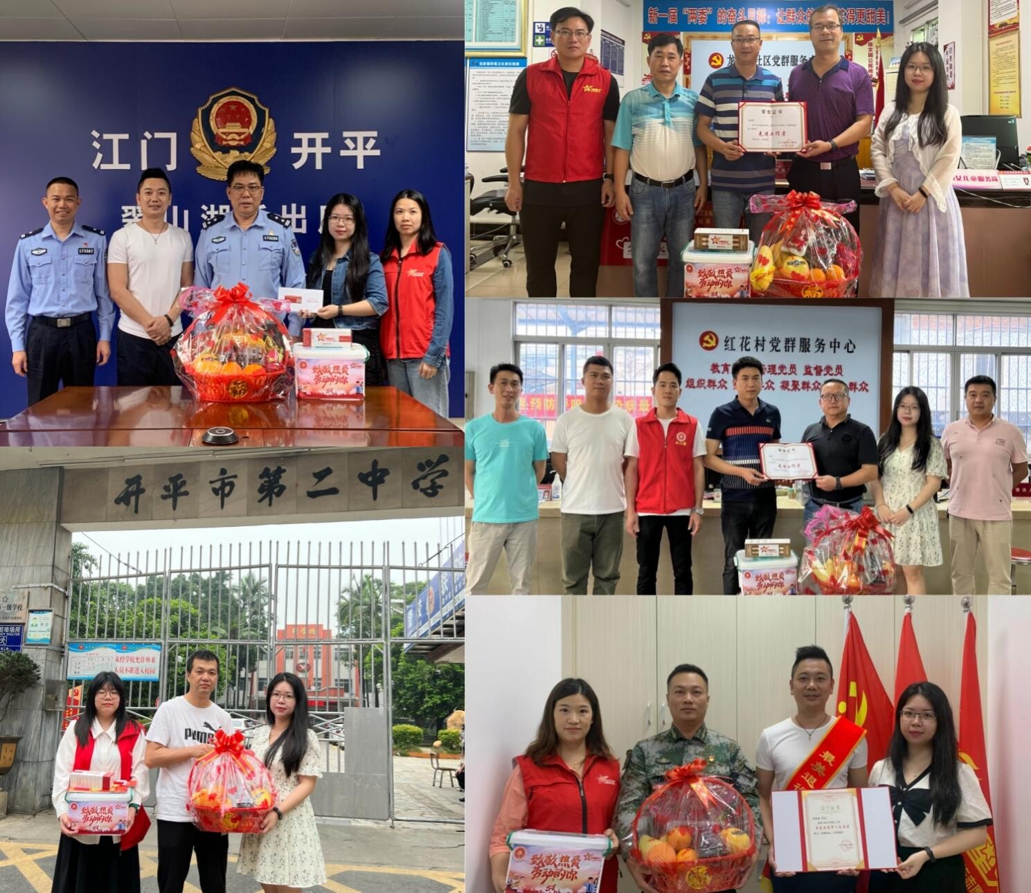 李錦漢(右五):1990年入伍,1993年退役;現任開平市公安局翠山湖派出所副所長,從警以來先后榮立個人二等功1次、個人三等功3次、榮獲2017年度全國優秀人民警察。他組織、指揮了一系列有影響的大案要案的偵破工作,帶領民警輔警走街串巷,實現“白天見警徽,晚上見警燈”,用血肉之軀守護僑鄉安寧。他借助送溫暖、基層走訪和主題宣傳等方式,進學校、入工廠、落社區開展禁毒、預防詐騙犯罪、掃黑除惡等宣傳活動,有效提高群眾預防意識。