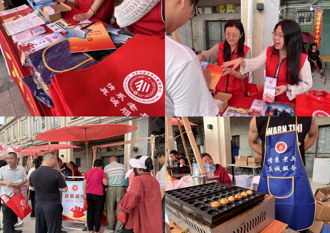 紅棉樹下、雅情雅景,眾多市民游客慕名前來“花式”打卡。木棉花主題的盛宴鋪陳而出,既有“潮圩雅集”上的紅棉創意手作等36個展位,又有詩歌展、繪畫展,更有紅棉說書人現場講述周文雍的故事。開平市退役軍人服務中心展位上,除了擺放宣傳展板、分發宣傳手冊,還通過贈送定制的“情系老兵 真誠服務”環保袋、數據線、圍裙等特色周邊,向前來參加活動的游客和商家宣傳相關政策法規和優惠優待項目,進一步增強擁軍優屬的濃厚氛圍。