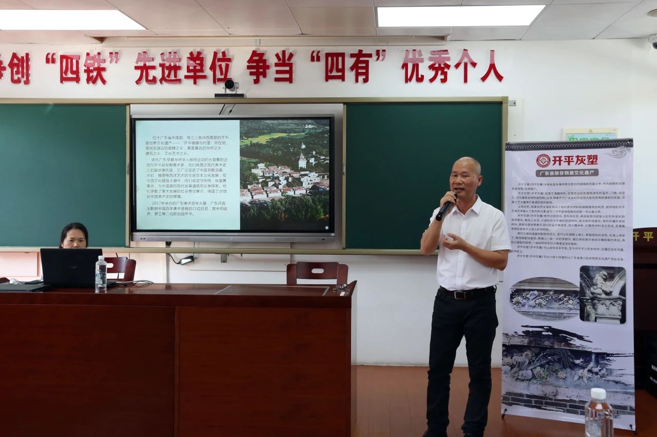 開平市美術館館長李強穩則給官兵們帶來了“開平美術名人畫作欣賞、黑板報版面設計”等美術專題講座。