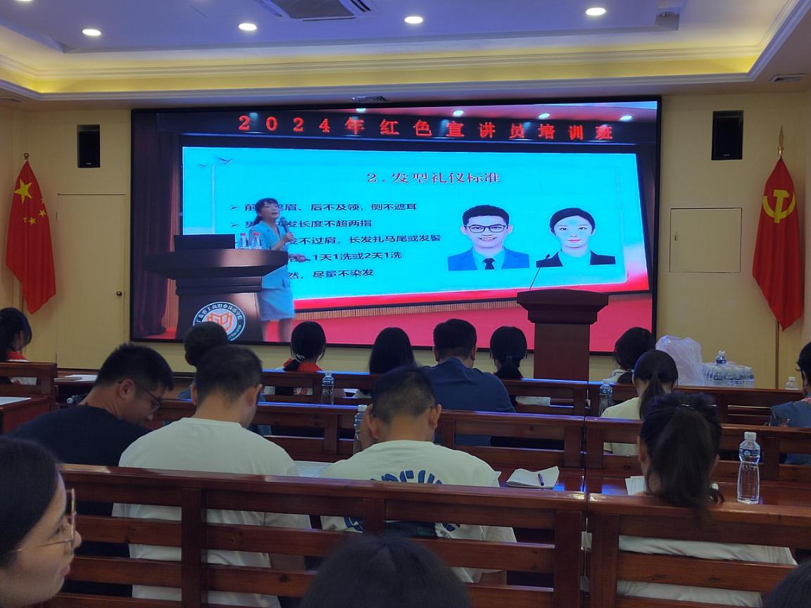 活動中,周文雍陳鐵軍烈士紀念館講解員還結合自身講解經驗,從講解定義、講解方法、講解禮儀等方面展開,詳細介紹了講解員應該如何發聲、吐字歸音、因人施講以及站姿、手勢、目光、微笑等講解規范和技巧,幫助各位學員提高講解水平,并從紅色故事中汲取精神力量,增強褒揚工作的責任感和使命感。