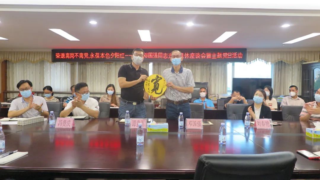 4月20日下午,市文廣旅體局黨總支部以“榮退離崗不離黨,永葆本色夕陽紅”為主題,舉辦鄧國強同志退休座談會暨主題黨日活動。文廣旅體局機關股級以上及相關黨員干部參加了座談會,會議由黨組成員、副局長譚發寧主持。 會上,二級主任科員鄧國強同志發表了退休感言。他表示對黨忠誠,做好本職工作是一生的追求,為我市文廣旅體事業奉獻38年青春而無怨無悔。鄧國強同志講述了他的人生故事和工作經歷:從13歲進入體校求學之路,到轉入原體育局、原旅游局和現在的文廣旅體局工作,再到如今開始“退休生活”的點點滴滴。他感嘆求學、工作上雖然一路艱辛,但是黨和國家對體育、文旅工作很重視,對他本人很關心,所以他很感謝黨的培養,很感激各位同事一直的支持和幫助。他本人表示:在接下來的退休生活里離崗不離黨,積極關心、支持我市文廣旅體事業發展,保持良好的退休心態。他寄語大家都能團結一致,共同做大做強我市文廣旅體事業。 會上,各位黨員、同事們踴躍發言,真情回顧了與鄧國強同志一起共事難忘的經歷,感謝他為我市文廣旅體事業發展兢兢業業的付出。大家都表示鄧國強同志對黨忠誠,對工作熱愛,很多學習、工作生活上的經驗和閃光點值得我們黨員干部學習。同時,大家也很感激鄧國強同志亦師亦友的幫助和關心,紛紛表示了不舍并祝愿他身體健康,退休生活更加精彩。 會上,局黨組書記、局長譚意軍也作了講話。他對鄧國強同志為我市文廣旅體事業發展做出的貢獻給予了充分的肯定,也很感激鄧國強同志以黨員的踐行給我局黨員上了一節生動的黨課,讓大家受益匪淺、收獲滿滿。譚意軍黨組書記以“三心”點贊了鄧國強同志做出的奉獻。一是能堅守初心、永葆共產黨員本色。他回想了2018年臺風“山竹”時,鄧國強同志請纓值夜堅守辦公場地,在凌晨1時,洪水浸淹,一樓水位急促上升時,獨自一人在斷電摸黑之際,把大量書籍搬上安全的地方,堅持到凌晨2時多,保護了旅游局書籍財產安全,顯示出共產黨員在關鍵時刻沖鋒在前,勇于擔當,模范帶頭的大無畏思想。二是做人寬心。鄧國強同志大局意識強,對組織的分工和改非,樂于接受,毫無怨言。他一直都是很熱情對待身邊的同事,經常跟年輕的同志拉家常、講人生,幫助后輩解決生活工作中的困難,就像年輕干部的人生導師,大家都稱他為“大暖男”。三是做事用心。鄧國強同志雖然畢業于體校,但他確是一位工作用心細致,非常負責任的同志,在分管體育、旅游市場、行業、財務等工作,一直都是在工作中學習,學習中工作,勇于擔當、親力親為,做一件成一件,是值得我們學習的好榜樣。 譚意軍黨組書記還代表文廣旅體系統全體黨員干部為鄧國強同志贈送了書法紀念品,并希望他在退休后繼續關注和支持文廣旅體的工作。