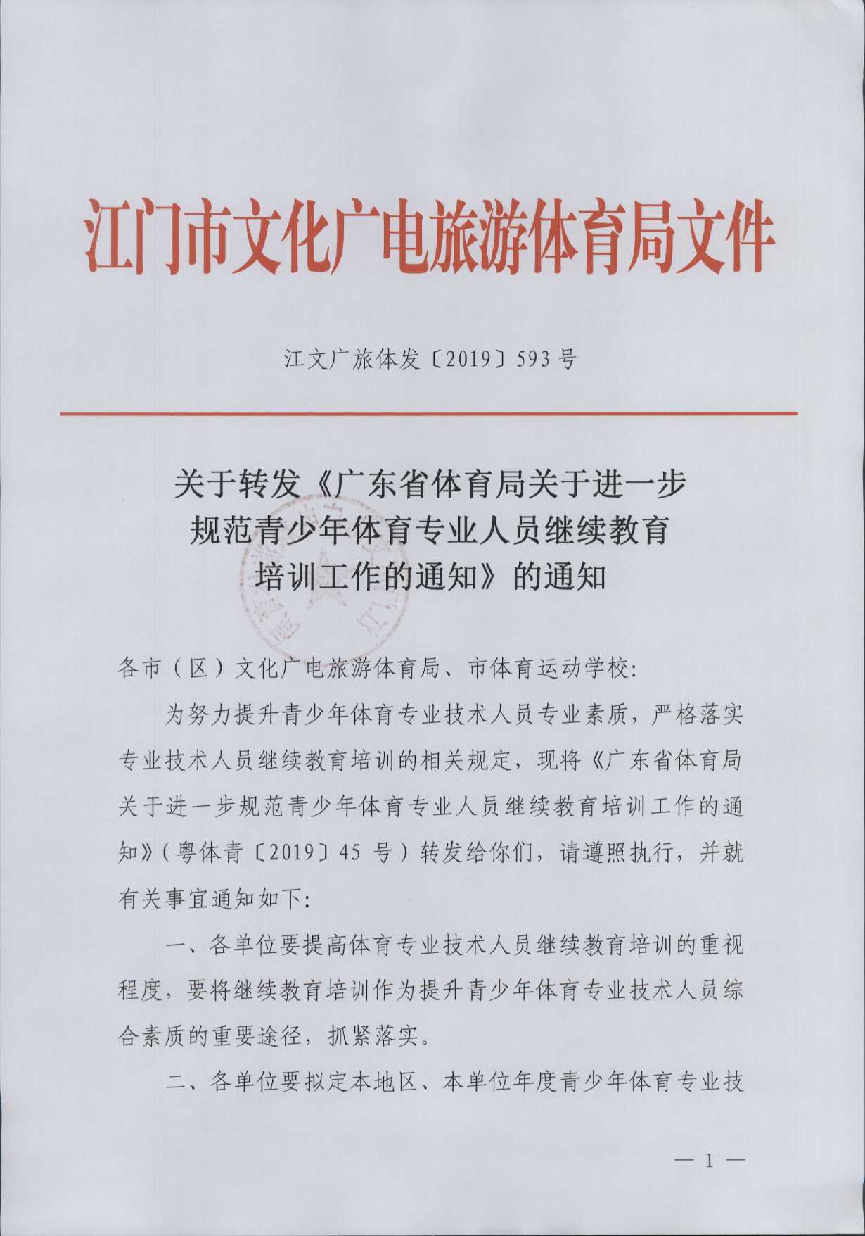 關(guān)于轉(zhuǎn)發(fā)《廣東省體育局關(guān)于進(jìn)一步規(guī)范青少年體育專業(yè)人員繼續(xù)教育培訓(xùn)工作的通知》的通知