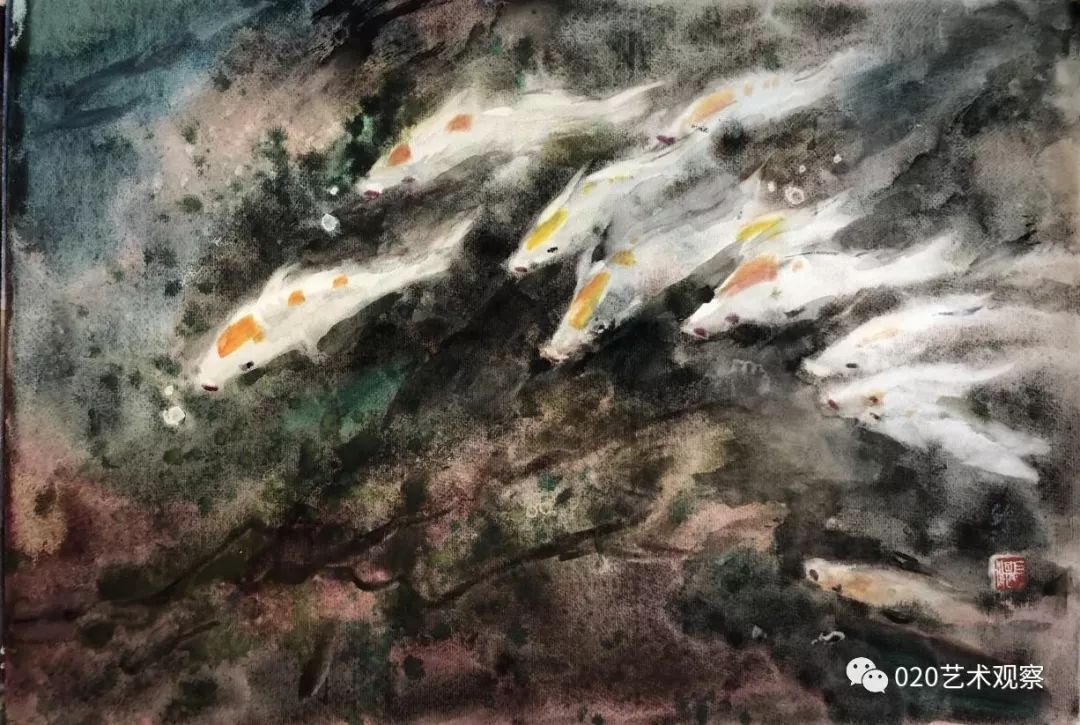 胡鉅湛,開平籍藝術(shù)家,擅長水彩畫、油畫。任教于廣州美術(shù)學(xué)院,曾任教育系主任、教授、碩士生導(dǎo)師,兼任廣東教育學(xué)院美術(shù)系主任、教授,為二系的創(chuàng)建人。中華人民共和國全國中、小學(xué)美術(shù)科教材審查委員會委員、中國美術(shù)家協(xié)會會員、廣東省文史館館員、廣東水彩畫藝術(shù)委員會副主任、廣東水彩畫研究會副會長等職。 胡鉅湛老師口述史采訪現(xiàn)場。龍成關(guān)攝 廣州美院“987口述史工程” 胡鉅湛老師訪談信息 受訪人:胡鉅湛老師(長子胡赤駿老師協(xié)助) 采訪時間:2018年6月12日 采訪地點:廣州美術(shù)學(xué)院胡鉅湛老師家中 采訪者:許俏文 攝像:文三原、龍成關(guān)、何銘迄 音視頻總時長:180分鐘 胡鉅湛老師與口述史采訪團隊合影。龍成關(guān)攝 胡鉅湛訪談文字摘錄 如何走上藝術(shù)道路? 我從小到大都是在玩的,畫畫也是在玩的。我感覺那個年代的年輕人跟現(xiàn)在不一樣,我們那個年代都是喜歡玩,現(xiàn)在是老師怎么講就怎么做,現(xiàn)在的要求太多。那個年代小孩都是在玩,那個魚、那個風(fēng)景也是玩出來的。怎么讓它們動起來,就要有想象,這個不容易。(在開平一中的時候),(胡根天)是我的老師。我那個時候,在學(xué)習(xí)這個階段,沒有人教也沒有人說,我們都是自己動手動腳,自己在那里玩。我好多畫都是動手實踐出來的。如果搞不清楚、講不清楚就動起來,慢慢就能感覺到是這么回事。后來才學(xué)會畫畫的,這整個過程我都是玩過來的。 采訪中,胡鉅湛老師長子胡赤駿老師向采訪者展示胡赤駿早年學(xué)畫期間曾用過的水彩顏料。龍成關(guān)攝 (胡赤駿補充)他說的意思大概就是那個時候只有在真實的生活里面玩,才有那種體驗。他畫風(fēng)景、畫魚,都是在玩。他的意思就是說要接觸真實的生活。 熱帶魚 水彩 39cm×54cm 1980年 “魚跟我們有感情” 我覺得魚跟我們有感情,魚可以幫我們想很多東西,魚動起來,很多變化是你想不到的。會引起共鳴,跟人的心有聯(lián)系。魚在水里玩啊玩啊,靠水來表現(xiàn),水有多少,出來的效果都不一樣。魚比較活躍,容易表現(xiàn)出來。畫魚,有光線就顯得很豐富,好多人都體會不到。要掌握這個水的性能和光線,要做到心中有數(shù),要讓水聽你的話,聽你“指揮”。我可以利用這個光線的變化,表現(xiàn)色彩什么時候淺,什么時候深。畫魚時,有些時候是在水上面做功夫,有些時候是在水的表現(xiàn)上,它們的效果是不同的。 1958年胡鉅湛與陳秀莪在武漢中南美專結(jié)婚,婚后因為學(xué)校工作安排,胡鉅湛隨學(xué)校去廣州參與組建廣州美術(shù)學(xué)院,陳秀莪趕回湖北珠基農(nóng)場 藝術(shù)伉儷 (胡赤駿講述)他們(胡鉅湛和陳秀莪)畫畫主要分三種類型:一個是習(xí)作,習(xí)作一般給學(xué)生示范畫的,是有對象的一種畫法;再一個就是他們帶學(xué)生下鄉(xiāng)寫生,我覺得他們當(dāng)時下鄉(xiāng)寫生是很自在的,畫了很多很漂亮的作品;然后,就進入到后來那個階段,他們自己慢慢摸索到了一個題材,一些做法。像我母親,她就是以花為主,畫花。他們兩人都畫魚,兩個人在技法上有切磋,互相都有一些“小發(fā)明”。比方說,他的畫里面魚的那種氣泡,是我母親發(fā)明的。她用酒精滴在畫作上,然后產(chǎn)生了像氣泡一樣的那種感覺,他就用上了,他們在技法上相互借用,但題材不一樣。 教學(xué)示范 組創(chuàng)廣美教育系 (胡赤駿講述)他(胡鉅湛)是(20世紀(jì))80年代末去組創(chuàng)廣州美院教育系的,以前叫師范系,培養(yǎng)專門的美術(shù)老師。他去做了三次調(diào)研,都有詳細的筆記。第一次是全國素描研討會的調(diào)研,第二次是為了師范教育的調(diào)研。后來就是為了水彩教育,水彩這個專業(yè)的教學(xué)記錄。這三次都有很詳細的筆錄,最后就成立了這個師范系。這個師范專業(yè)在當(dāng)時是全國第一個正式的水彩教育專業(yè),他也是第一個在全國招水彩專業(yè)研究生的人。 教學(xué) “三小時作畫” 以前和現(xiàn)在肯定是有變化的,都不一樣。比如有些東西用來表現(xiàn)魚可以,但是表現(xiàn)別的就不行。如果畫的是很結(jié)實的東西,比如金屬,它就沒辦法體現(xiàn)。有些畫法只適合一種題材,總不能說讓所有人都去畫魚。平常畫水彩要想很多辦法來表現(xiàn)水的變化,材料的變化也多種多樣。平常畫一張畫要畫三小時,但我畫的時間就可以比較短。 我們拜訪顏文粱老師 (胡赤駿講述)他所說的“三個小時”,指的是一張紙弄濕了以后,基本上三個小時就會干了。紙干了以后你再畫,它就生硬了,就會出現(xiàn)硬邊,很生硬的感覺。所以他要在三小時沒干之前,讓顏色都能融在一起。 寫生 我觀察過他畫畫,現(xiàn)在這個時候是他畫畫最好的時候,因為濕度大。下大雨,濕度就很大,他這個時候畫畫成功率就很高。因為畫紙干的時間相對比較長,他有更多的時間去調(diào)整,所以這個畫和天氣有很大關(guān)系。 水彩畫研究會 我做過實驗,請他去“湖廬”,正好那個時候是北風(fēng)天,他要畫一個東西他就畫不了,因為那個畫干得太快,所有東西他都操控不了。他畫畫是會受到客觀環(huán)境的影響的。我曾經(jīng)想跟他在從化搞一個畫室,按照他要求的光線,那個空間里面可以控控制干濕度