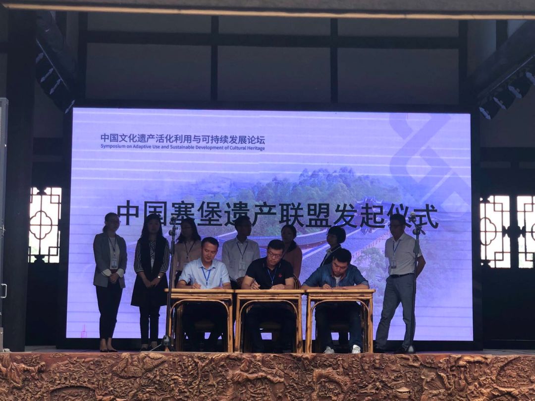 2019年5月10日至11日,由中國古跡遺址保護協會、中國旅游景區協會等指導,四川省古跡遺址保護協會等單位主辦的“中國文化遺產活化利用與可持續發展論壇——寶箴塞民眾防御建筑群峰會”在四川寶箴塞旅游區召開。開平市文化廣電旅游體育局局長譚意軍、副局長譚煥燮,開平市世界遺產管理中心主任譚健民等作為開平碉樓與村落的代表出席本次峰會。 會議期間,舉行了中國塞堡聯盟發起儀式。開平碉樓與村落和武勝寶箴塞、貴州海龍屯作為聯合發起單位,向國內同類型文化遺產地發起倡議,希望能夠共樹中國塞堡遺產品牌,共建塞堡間、城市間、企業間、媒體間往來體系,共行保護利用及可持續發展之路。 本次峰會聚焦中國塞堡類文化遺產的文化價值研究,積極推進了塞堡類文化遺產的研究和價值挖掘,促進全國范圍內塞堡類文化遺產地保護與發展的互相了解、互補發展,為進一步的科學保護與活化利用奠定了基礎。