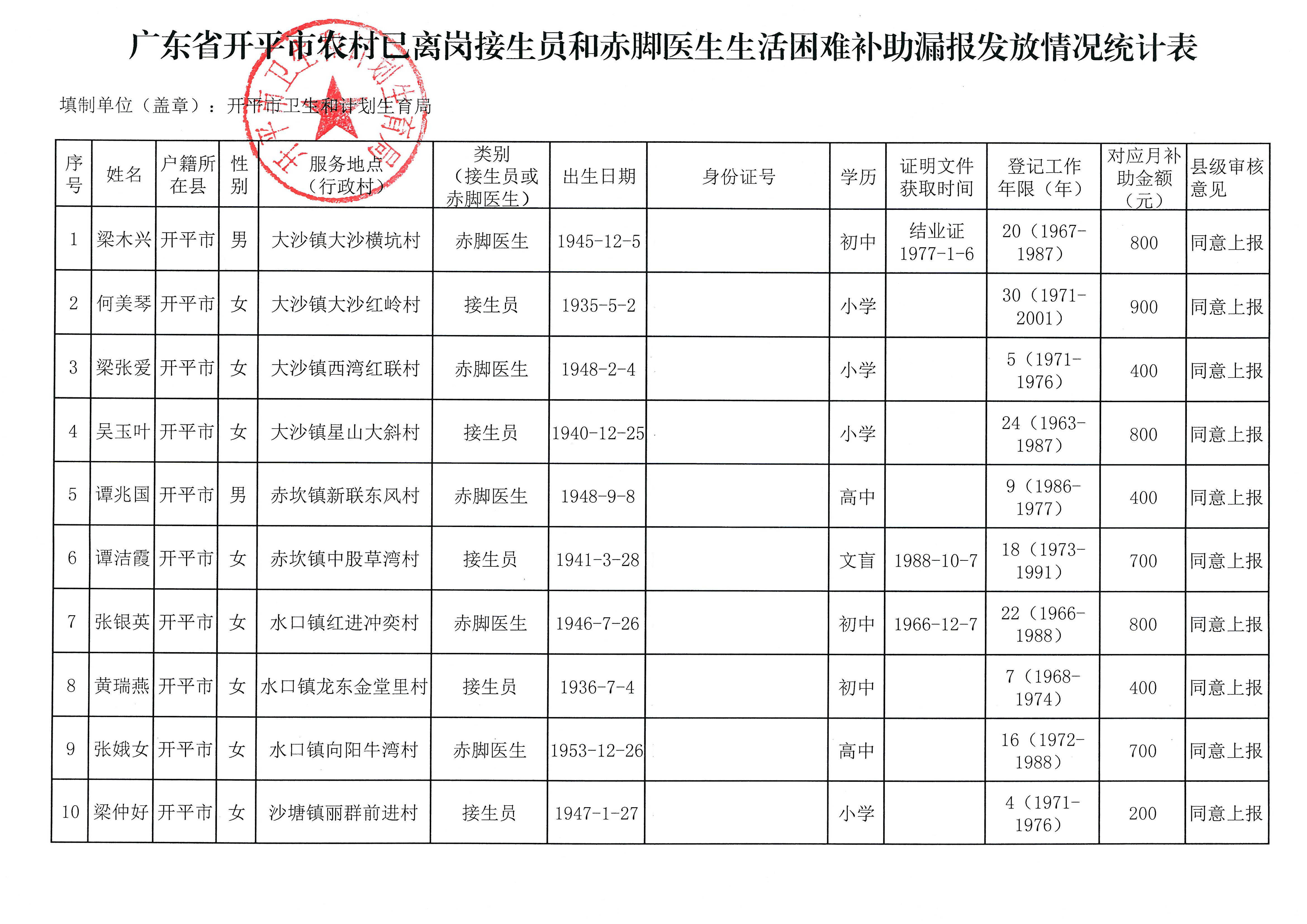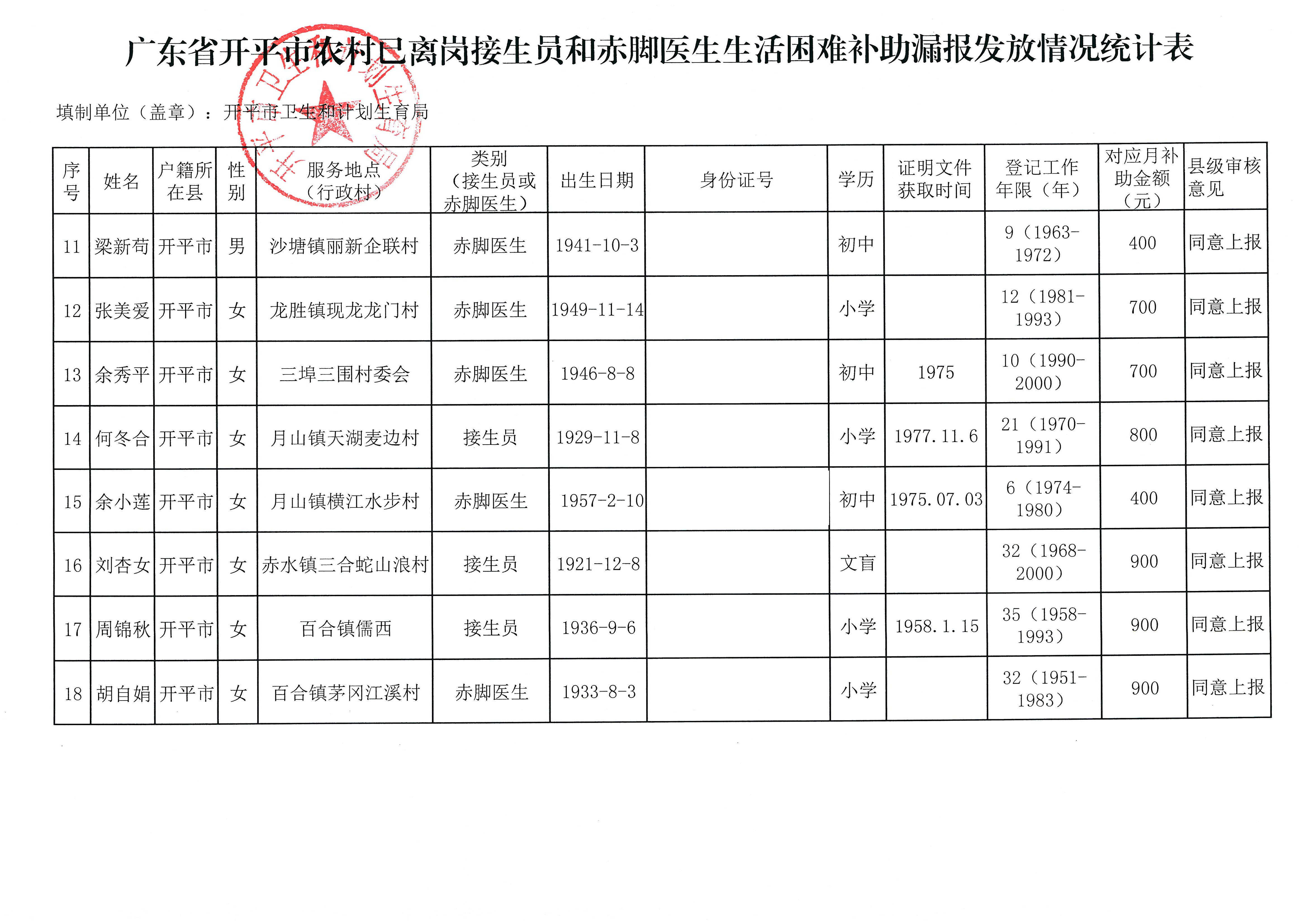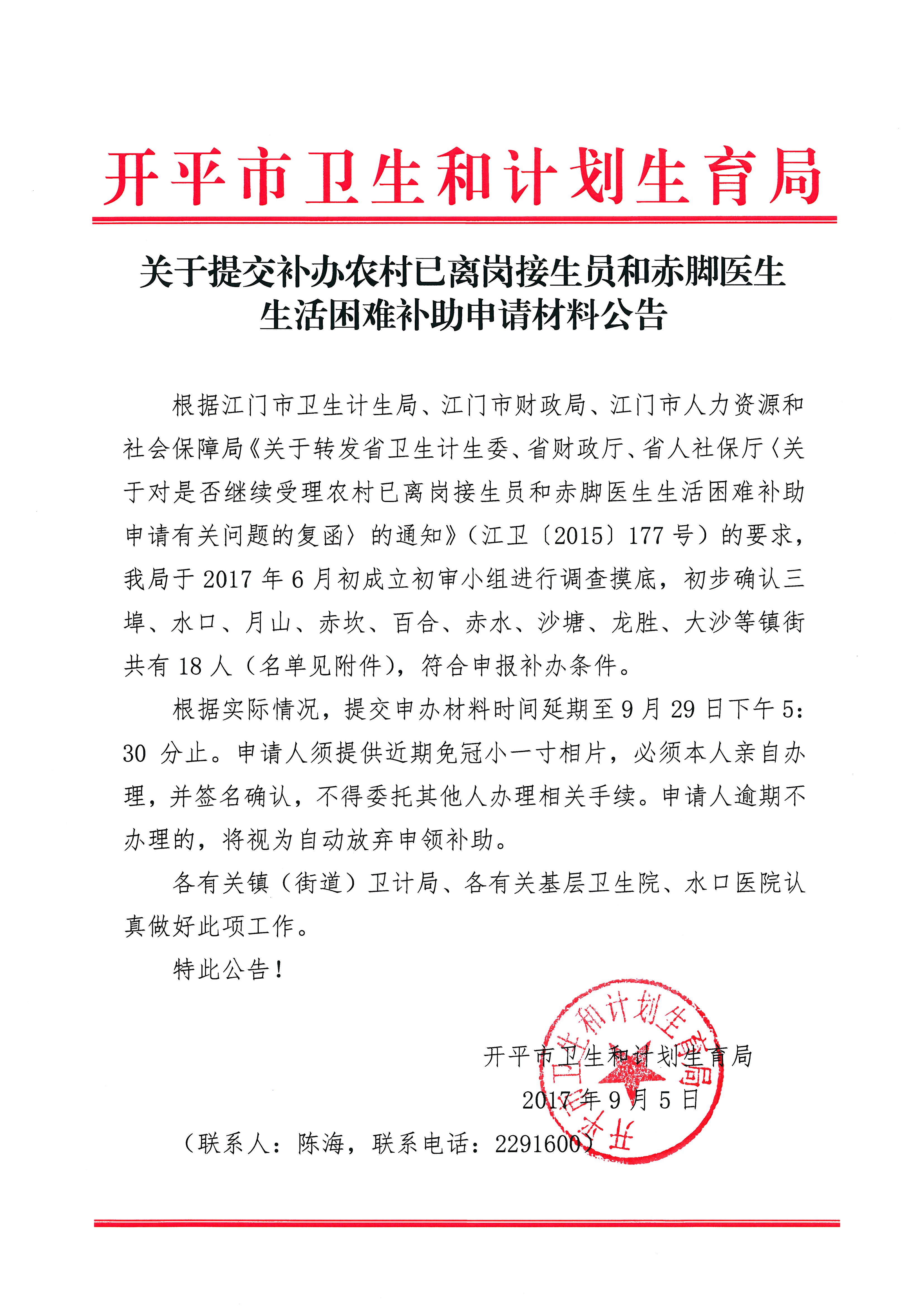 【2017-9-5】關于提交補辦農村已離崗接生員和赤腳醫生生活困難補助申請材料公告