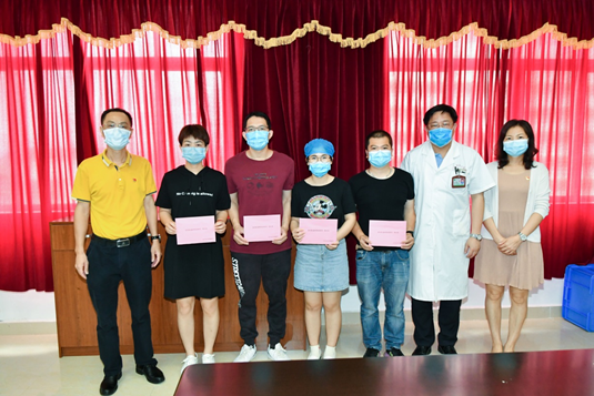 4月21日上午,市衛健局黨組成員、副局長劉廷標帶隊到市中心醫院慰問溫嘉強、梁玉明、勞源源、譚秀清4名援鄂醫護人員,向“最美逆行者”致敬。 座談會上,劉廷標同志對援助湖北醫務人員臨危授命、勇于擔當、甘于奉獻的崇高精神表示深深的敬意。在湖北疫情防控的關鍵時刻,我市馳援湖北醫務人員舍小家顧大家,不畏困難,不懼危險,逆行而上,同時間賽跑,為健康護航,以實際行動踐行習近平總書記重要指示精神,充分體現了救死扶傷、大愛無疆的醫者仁心,體現了沖鋒在前、勇挑重擔的過硬作風,是最美的“逆行者”、最美的開平人。 自2月11日奔赴湖北抗疫以來,4名援鄂醫護人員不負重托、不辱使命,沖鋒在前,在抗疫主戰場發揮了應有作用,圓滿地完成了支援任務。他們表示,接下來,將會收拾好心情,回歸自己原本的崗位上,用自己的經驗和力量在工作上作出自己應有的貢獻。 最后,還慰問了中心醫院感染科、發熱門診和疾控中心的一線醫務人員,向他們致以崇高的敬意和表示衷心的感謝!