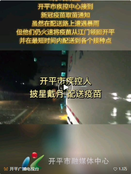 無論是大規模人群新冠肺炎核酸檢測,還是隔離人員的排查工作,都可以看到身披紅色“中國衛生”馬甲的余焜娟忙碌的身影,但余焜娟告訴記者,同為疾控戰士的丈夫許楠,才是“披星戴月”的人。去年6月1日晚上,市疾控中心接到取苗通知,當時突降暴雨,許楠和他同事接到任務后,不畏風雨,火速將疫苗從江門領回開平,并在最短時間內配送到各個接種點。