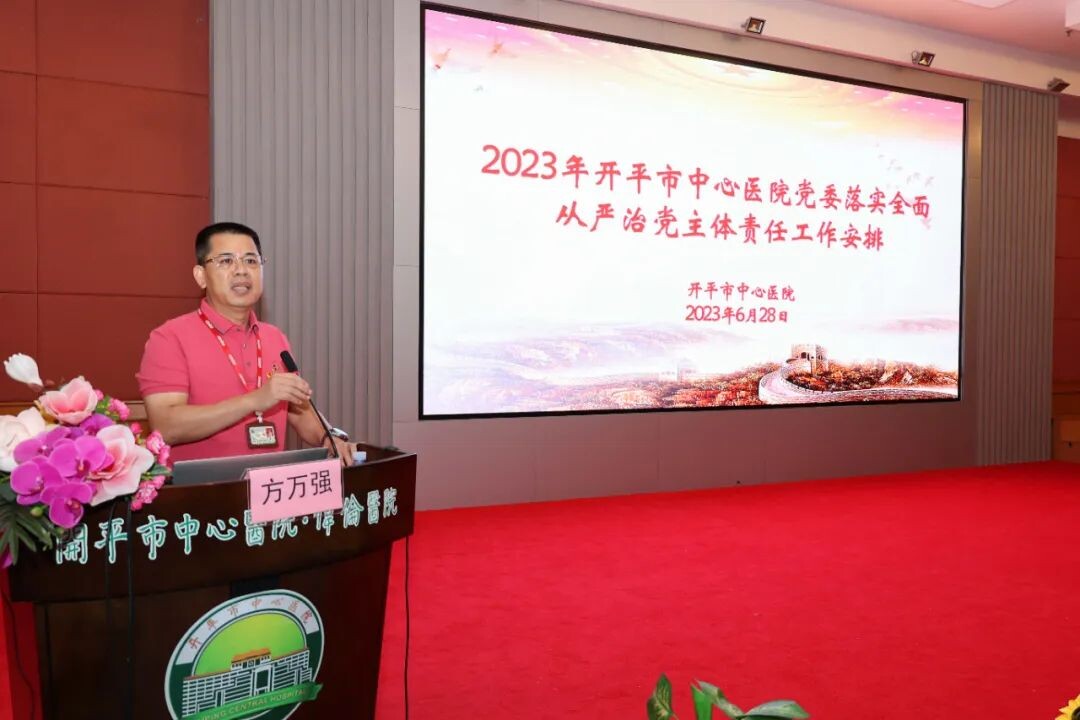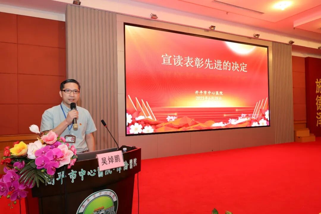 為學(xué)習(xí)貫徹習(xí)近平總書記視察廣東重要講話重要指示精神和《習(xí)近平著作選讀》主要精神,慶祝中國共產(chǎn)黨成立102周年,動員和激勵基層黨組織和全院黨員干部堅定理想信念,弘揚偉大建黨精神,進(jìn)一步增強(qiáng)黨組織的政治功能和組織功能,根據(jù)上級黨組織的文件精神和工作部署,開平市中心醫(yī)院醫(yī)院黨委在建黨102周年之際舉行了慶祝中國共產(chǎn)黨成立102周年暨“七一”表彰大會。 ▲大會在莊嚴(yán)雄壯的國歌聲中拉開序幕。 ▲大會特別邀請開平市委宣講團(tuán)成員梁東想同志宣講“學(xué)習(xí)貫徹習(xí)近平總書記視察廣東重要講話重要指示精神和《習(xí)近平著作選讀》主要精神”,讓習(xí)近平新時代中國特色社會主義思想在開平市中心醫(yī)院更好地落地生根、結(jié)出碩果。 ▲黨委書記方萬強(qiáng)就2023年開平市中心醫(yī)院黨委落實全面從嚴(yán)治黨主體責(zé)任工作安排進(jìn)行黨課輔導(dǎo)。 ▲黨委副書記、院長吳焯鵬宣讀表彰先進(jìn)的決定,進(jìn)一步營造崇尚榜樣、爭當(dāng)榜樣、積極向上、比學(xué)趕超的氛圍。 ▲黨委副書記鄺家俊就完成黨支部換屆改選宣讀《吳釗華等同志任職的決定》。 ▲黨委委員、副院長吳妙瓊要求全院黨員干部做好醫(yī)共體建設(shè)與主題黨日融合的無縫對接。 ▲新黨支部書記代表劉艷虹同志作了表態(tài)發(fā)言,宣誓、承諾作為一名新黨支部書記,將堅持黨建引領(lǐng),用自己的實際行動,當(dāng)好黨支部書記,把黨建工作全面融入日常工作中。 ▲全院黨員干部還觀看了視頻《時代楷模