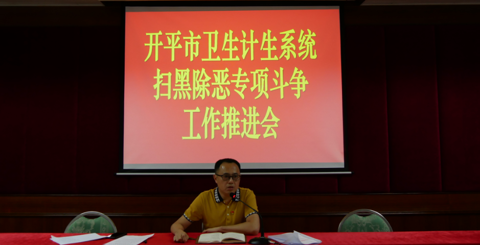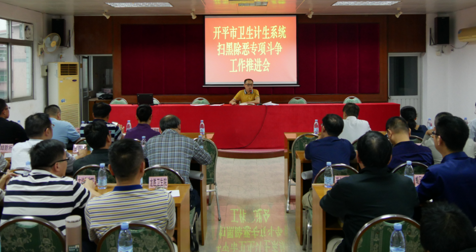 11月2日下午,開平市衛生計生局在六樓召開衛生計生系統掃黑除惡專項斗爭推進會,會議傳達了市掃黑除惡專項推進精神,對全市衛生計生系統掃黑除惡工作進行再動員、再部署、再發動。局全體黨員、名醫療衛生單位負責人共50余人參加。 會上,黃奕強局長強調,全市各醫療衛生計生單位一定要從講政治、講大局、講黨性的高度,進一步深化認識,提高政治站位,切實增強深入推進掃黑除惡專項斗爭的責任感和緊迫感。要求在線索摸排上再下功夫,各單位要按照“有黑掃黑,無黑除惡,無惡治亂”的原則,對職責職能范圍內相關領域進行全面摸排,及時上報。嚴格落實領導負責制,安排專人負責該項工作,切實推動掃黑除惡專項斗爭工作取得實效。