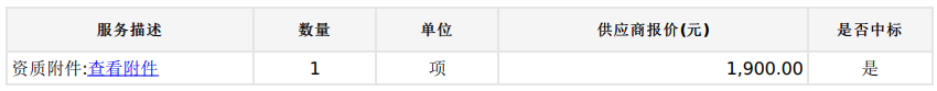 【跳轉進入中國政府采購網廣東分網廣東省政府采購網】廣東政府采購智慧云平臺電子賣場 定點議價成交公告 項目名稱:開平市衛生健康局裝修工程定點采購(廢標重上項目) 項目編號:DDYJ-2024-1076598 本項目于2024-02-19 18:01:42啟動。現將本次議價結果公布如下: (一)成交供應商:開平市長實市政建筑有限公司 (二)成交價:1900.00(壹仟玖佰元整) (三)成交標的明細采購單位:開平市衛生健康局 2024年02月20日