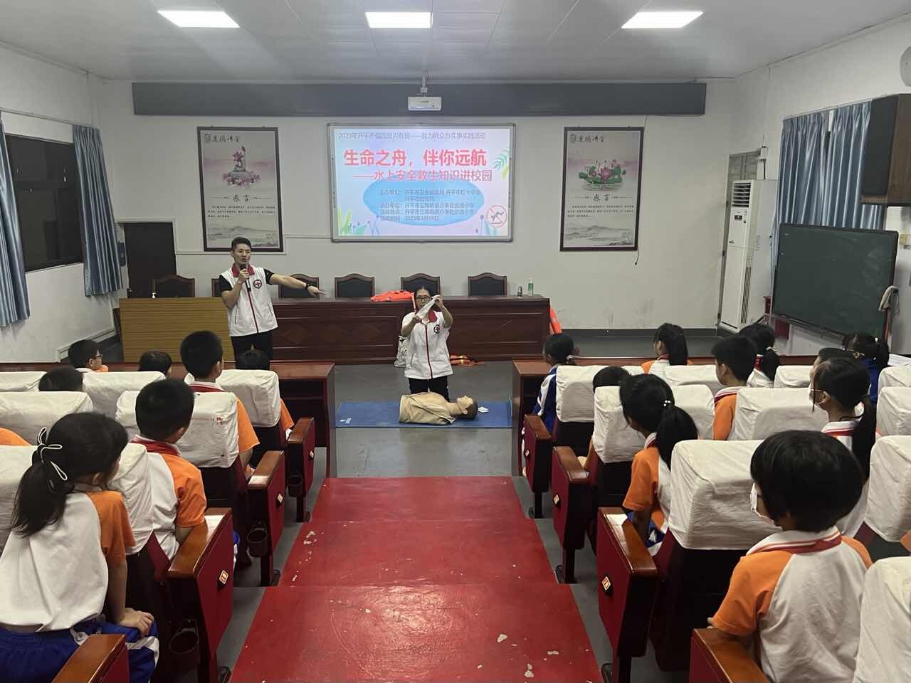 隨著天氣漸熱、汛期和假期的到來,我市進入學生溺水事故危險期、易發期、高發期。為加強校園安全教育工作,防止溺水事故的發生,提高學生突發事件應急處置能力,4月19日上午,開平市衛生健康局聯合開平市紅十字會、開平市教育局走進達德小學開展以“生命之舟 伴你遠航”為主題的水上安全救生知識進校園教育活動。 活動現場,紅十字資深講師通過案例分析、現場專業示范、模擬演練的方式,生動形象的將防溺水的重要性、如何防溺水以及溺水時如何自救互救的方法等預防溺水應急救護技能傳授給每位學生。學生互動環節現場氣氛非常活躍,學生積極舉手參加實操,親身體驗的同學紛紛表示受益匪淺,并時刻謹記“防溺六不準”。 通過此次水上安全救生知識進校園教育活動,進一步強化了學生的防溺水安全意識,提高了學生溺水時的應急處置能力以及防范能力,共同營造一個健康、安全、平安的校園環境。