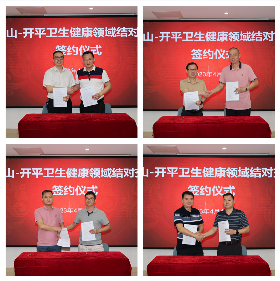 4月19日,鶴山市衛生健康局副局長郭時貴率領鶴山市人民醫院、鶴山市中醫院、鶴山市婦幼保健院、鶴山市共和鎮衛生院、鶴山市址山鎮衛生院主要領導一行10人,到我市醫療機構開展衛生健康領域結對交流活動。 首先,我市衛生健康局黨組成員蘇黎明對鶴山市一行的到來表示熱烈歡迎。蘇黎明強調,結對交流是推進鶴山-開平醫療衛生領域區域平衡發展合作,促進醫療事業高質量發展的重要舉措,希望我市醫療機構要充分利用好本次結對交流的機會,學習先進發展經驗,提升醫療衛生技術及管理水平。 鶴山市衛生健康局副局長郭時貴表示,十分感謝有這樣一個結對交流的平臺,希望各結對醫院要在建立健全服務體系、促進??瓢l展、完善管理運營機制、加強人才隊伍建設等方面務實開展深入交流與發展合作。 隨后,各結對醫院就醫院的基本情況、結對交流合作需求等進行了座談。依照結對合作關系,各結對醫院簽署了鶴山-開平衛生健康領域結對交流協議書,并深入我市中心醫院腎內科進行參觀和學習交流。 (鶴山市人民醫院-開平市中心醫院簽署結對交流協議) (各結對醫院簽署結對交流協議)