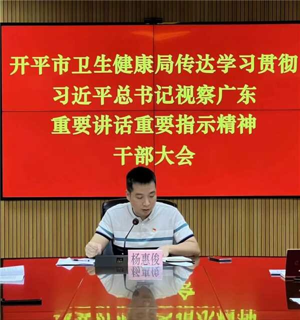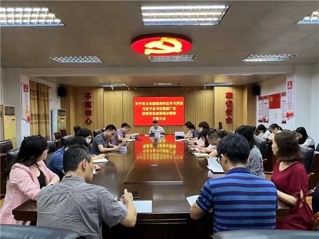 4月24日,市衛生健康局召開黨組(擴大)會議,傳達學習習近平總書記視察廣東重要講話、重要指示精神。市衛生健康局黨組成員、副局長楊惠俊主持會議。市衛生健康局各分管領導、各股室負責同志參會。 會議強調,衛生健康系統要深刻銘記總書記對廣東人民的關心關愛、對廣東工作的勉勵指導,深刻認識習近平總書記視察廣東重要講話、重要指示的重大意義,深刻領會習近平總書記視察廣東重要講話、重要指示的豐富內涵和實踐要求,深刻領會總書記對廣東作出的新定位,以更為艱辛的探索、更加艱苦的努力,堅決完成好在推進中國式現代化建設中走在前列的使命任務。 會議要求,要把學習宣傳貫徹工作擺上重要位置,推動學習宣傳貫徹工作不斷往深里走、往實里走。一是要領導帶頭示范學。二是要基層組織分類學。三是要宣傳引導深入學。四是要調查研究實踐學。以學促干有力有序推動各項任務落地落實。 會議強調,貫徹落實習近平總書記的重要講話、重要指示精神,要以政治建設為統領,不斷提高黨的建設質量,為全面推進衛生健康高質量發展提供引領和保障。一是要堅持黨的全面領導。二是要認真開好主題教育。三是要加強干部隊伍和基層黨組織建設。四是要深入推進黨風廉政建設和反腐敗斗爭。 會議強調,要堅定不移貫徹新發展理念,堅定不移推動衛生健康高質量發展。一是要堅持以人民為中心的發展思想,盡力而為、量力而行,積極辦好民生實事,推進健康開平建設。二是要聚焦高質量發展目標。三是要聚焦疫情防控新階段要求。四是要聚焦重點民生工作任務。