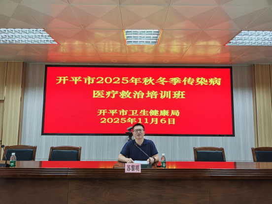 為切實做好我市秋冬季傳染病防治各項工作,持續提升醫務人員對重點傳染病的早期識別、規范診療等能力,11月6日下午,開平市衛生健康局舉辦開平市2025年秋冬季傳染病醫療救治培訓班,全市醫療機構分管領導及相關科室負責同志參加培訓。 培訓班由市衛生健康局副局長蘇黎明作動員講話,強調各醫療機構要針對當前流行毒株特性和診療需求,重點強化發熱門診(診室)病原識別、差異化診療、重癥早期預警、抗病毒藥物規范使用等技能,組織開展醫務人員專題培訓,提升規范化診療水平,并加強抗流感病毒藥物、解熱鎮痛藥物等診療物資儲備,切實保障人民群眾就醫需求與身體健康。 本次培訓班,邀請開平市中心醫院呼吸與危重癥醫學科專家吳慶華和兒科專家陳清鳳進行授課。培訓班系統解讀了秋冬季呼吸系統傳染病診療與防控策略及兒童肺炎支原體、兒童流感、兒童諾如病毒防治等常見傳染病的流行現狀、早期識別要點、臨床表現、鑒別診斷、治療方案及院感防控等關鍵要點。 下一步,我局將加大對重點傳染病防治的監測,結合季節流行特點與疫情防控新形勢持續舉辦針對性培訓學習,筑牢秋冬季傳染病防控安全防線。