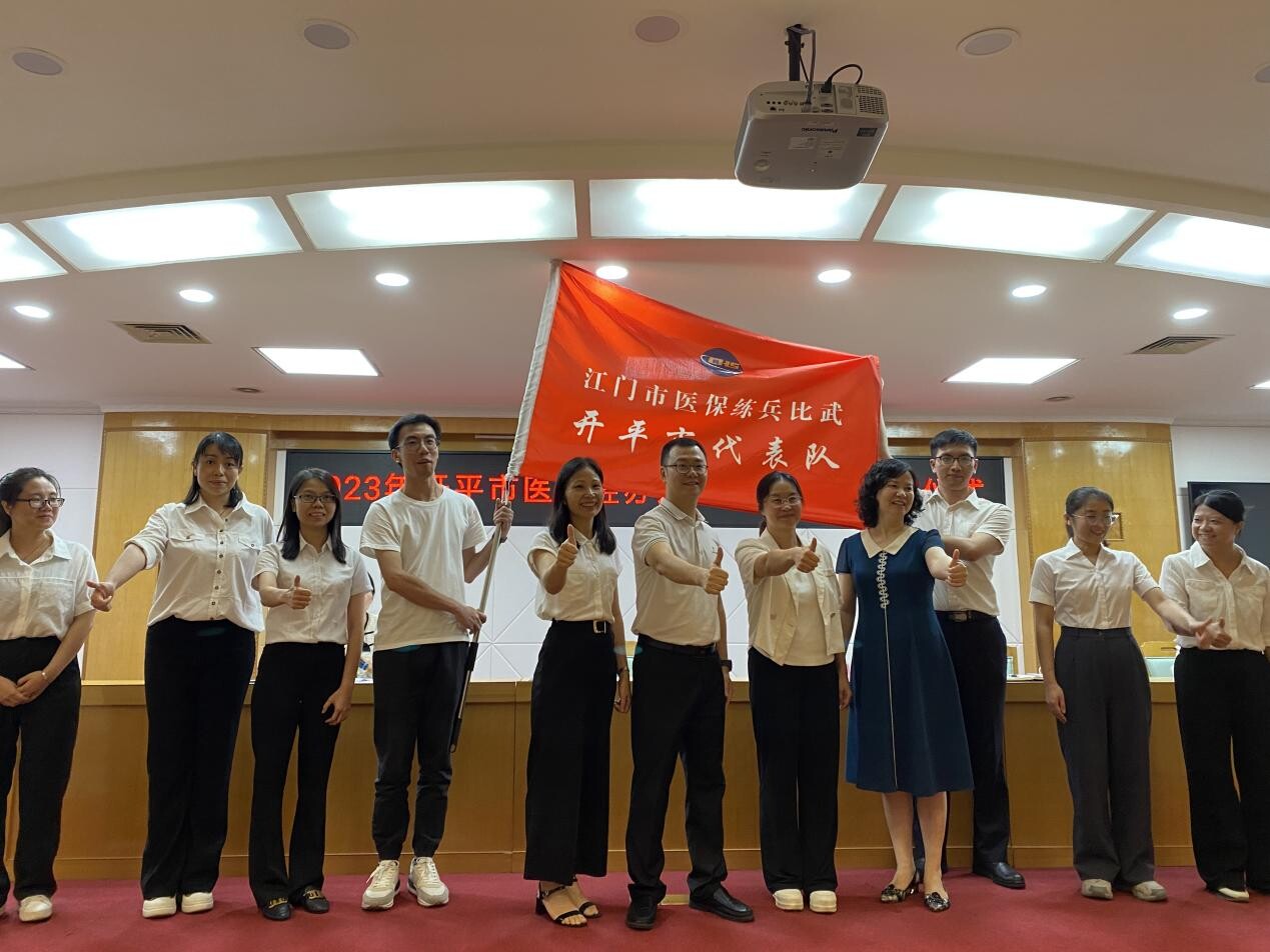 9月15日下午,2023年開平市醫保經辦系統練兵比武大賽頒獎儀式順利舉行,市人民政府梁健芬副市長,市醫療保障局、市醫療保障事業管理中心等有關部門、各鎮街和翠山湖管委會相關領導及工作人員共80余人參加。會上,市醫療保障局副局長許嬋歡宣讀了比武大賽獲獎名單,市人民政府副市長梁健芬、市醫療保障局黨組書記莊冬梅和市政協副主席、市醫療保障局局長梁榮華等幾位領導分別為獲獎人員頒發獲獎證書及獎品,并為參加江門市級比武賽的8名代表隊員進行授旗及加油打氣,勉勵代表隊員們繼續刻苦學習,不斷提升業務能力和整體素質,爭取在江門市級的比武賽中賽出風采,賽出成績,為我市醫保系統爭光。