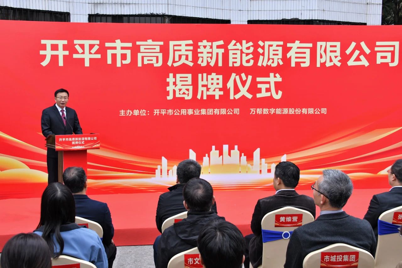 2月11日上午,開平市高質新能源有限公司舉行揭牌儀式,進一步深化和完善綜合能源體系著力推動新能源及可再生能源的開發與應用,推進開平市能源產業持續、有序發展。市領導張偉贊出席活動。 開平市高質新能源有限公司由開平市公用事業集團有限公司屬下子公司開平市公用能源管理有限公司與萬幫集團屬下子公司廣州市星星充電設備有限公司合資成立,旨在通過資源整合、技術創新和市場拓展,打造一個在行業內具有強勁競爭力的全新企業,共同推動開平市新能源產業的創新發展。 揭牌儀式上,開平市公用事業集團有限公司黨總支書記、董事長張向寧對高質新能源公司的正式啟航表以最衷心的祝賀,并強調,在當前綠色低碳轉型的關鍵時期,新能源產業正以前所未有的速度蓬勃發展。作為地方能源基礎設施建設的“主力軍”,市公用事業集團將始終以“立足開平