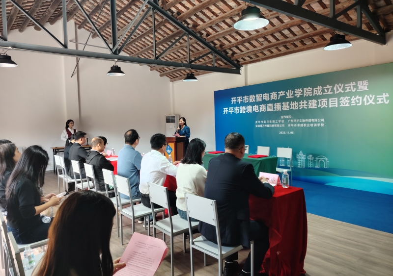 11月5日上午,開(kāi)平市數(shù)智電商產(chǎn)業(yè)學(xué)院成立儀式暨開(kāi)平市跨境電商直播基地共建項(xiàng)目簽約儀式在三埠街道荻海埠舉行,標(biāo)志著開(kāi)平市在深化產(chǎn)教融合、搶抓數(shù)字經(jīng)濟(jì)與跨境電商發(fā)展方面邁出關(guān)鍵一步,為開(kāi)平市產(chǎn)業(yè)升級(jí)與經(jīng)濟(jì)高質(zhì)量發(fā)展注入新動(dòng)能 儀式上,開(kāi)平市吳漢良理工學(xué)校、開(kāi)平市城市建設(shè)發(fā)展集團(tuán)有限公司下屬企業(yè)廣東開(kāi)平文旅傳媒有限公司、開(kāi)平市卓越職業(yè)培訓(xùn)學(xué)校三方共同簽訂戰(zhàn)略合作協(xié)議書(shū),并為“開(kāi)平市數(shù)智電商產(chǎn)業(yè)學(xué)院”揭牌。產(chǎn)業(yè)學(xué)院將深度融合“數(shù)據(jù)”與“智能”,通過(guò)校企協(xié)同育人、項(xiàng)目化實(shí)戰(zhàn)教學(xué)等模式,搭建從學(xué)習(xí)到就業(yè)、創(chuàng)業(yè)的快速通道,廣泛開(kāi)展社會(huì)培訓(xùn),致力打造粵西地區(qū)電商人才培養(yǎng)高地。 開(kāi)平市吳漢良理工學(xué)校校長(zhǎng)張國(guó)蘭介紹:“這個(gè)項(xiàng)目對(duì)校企雙方而言是雙贏之舉,該基地是真實(shí)項(xiàng)目運(yùn)營(yíng)的場(chǎng)所,學(xué)生們能以學(xué)徒身份在這里接觸實(shí)際項(xiàng)目,這對(duì)提升他們的技能水平、增進(jìn)對(duì)崗位的認(rèn)識(shí)都有著顯著的促進(jìn)作用。此外,基地不僅開(kāi)展學(xué)生的培訓(xùn)工作,還面向社會(huì)技能人才提供培訓(xùn)服務(wù),主要致力于服務(wù)本地的中小企業(yè)。如果有中小企業(yè)在這方面存在人才需求,可直接與基地對(duì)接,學(xué)校能夠向企業(yè)直接輸送技能人才。” 同時(shí),廣東開(kāi)平文旅傳媒有限公司與深圳易萬(wàn)傳媒科技有限公司簽訂《開(kāi)平市跨境電商直播基地共建項(xiàng)目合作協(xié)議書(shū)》,共同啟動(dòng)“開(kāi)平市跨境電商直播基地共建項(xiàng)目”,雙方將攜手推動(dòng)本地跨境電商發(fā)展。該項(xiàng)目以開(kāi)平市荻海埠片區(qū)物業(yè)為載體,依托開(kāi)平產(chǎn)業(yè)資源、僑鄉(xiāng)優(yōu)勢(shì)與文旅基礎(chǔ),打造集人才培訓(xùn)、直播帶貨、企業(yè)服務(wù)與品牌孵化于一體的區(qū)域性跨境電商示范平臺(tái)。項(xiàng)目計(jì)劃每年孵化不少于100名本土電商直播人才,助力開(kāi)平特色產(chǎn)品通過(guò)直播渠道拓展至海內(nèi)外市場(chǎng),進(jìn)一步推動(dòng)地方產(chǎn)業(yè)轉(zhuǎn)型與經(jīng)濟(jì)發(fā)展。 開(kāi)平市數(shù)智電商產(chǎn)業(yè)學(xué)院的成立及跨境電商直播基地共建項(xiàng)目的簽約,有效整合了教育資源與產(chǎn)業(yè)需求,是開(kāi)平市響應(yīng)國(guó)家數(shù)字經(jīng)濟(jì)發(fā)展戰(zhàn)略、推動(dòng)產(chǎn)業(yè)轉(zhuǎn)型升級(jí)的重要舉措,也將為促進(jìn)就業(yè)創(chuàng)業(yè)、賦能區(qū)域經(jīng)濟(jì)高質(zhì)量發(fā)展提供持續(xù)動(dòng)力。