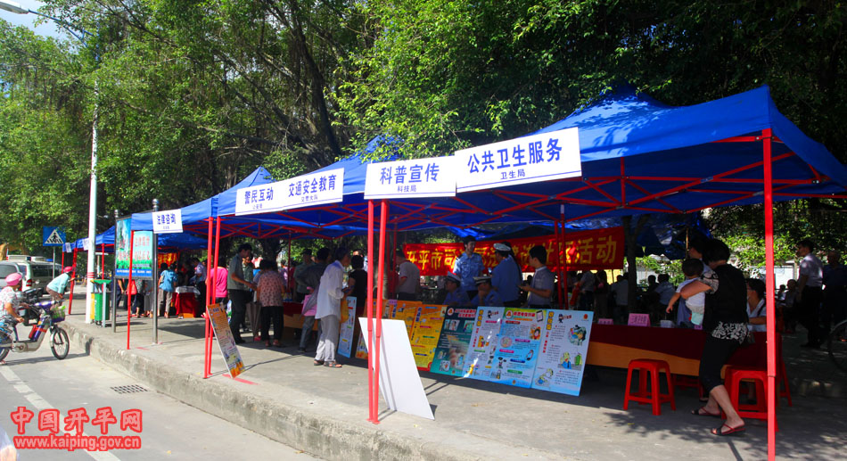 7月11日上午,創(chuàng)文宣傳活動(dòng)走進(jìn)三埠荻海社區(qū)。市公安局、衛(wèi)生局、科技局、司法局、文化館等部門在現(xiàn)場(chǎng)向市民宣傳創(chuàng)文、科普、法制、交通安全、公共衛(wèi)生等政策和知識(shí),為市民提供免費(fèi)法律咨詢、醫(yī)療保健等服務(wù),還有文藝表演和創(chuàng)文知識(shí)有獎(jiǎng)問答環(huán)節(jié)。豐富多彩的活動(dòng),活躍了社區(qū)創(chuàng)文氣氛,吸引眾多市民踴躍參與。