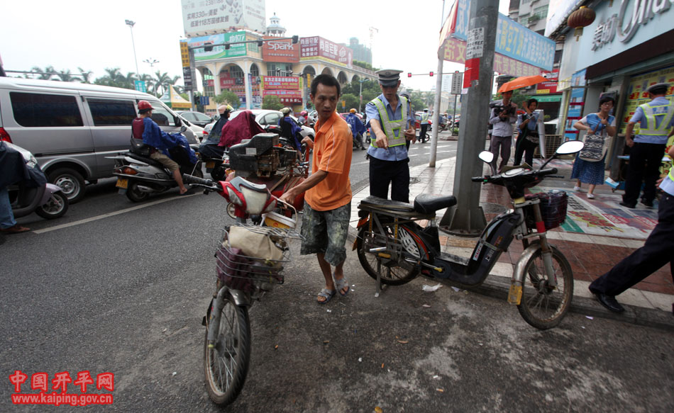 交警對違章過馬路的電動車駕駛人進行處罰