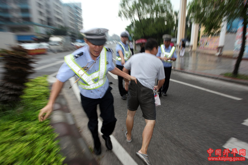 被多名交警制止