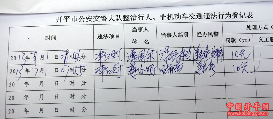 不到十分鐘就有兩位市民沖紅燈被交警依法罰款10元