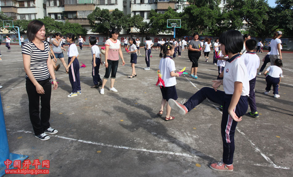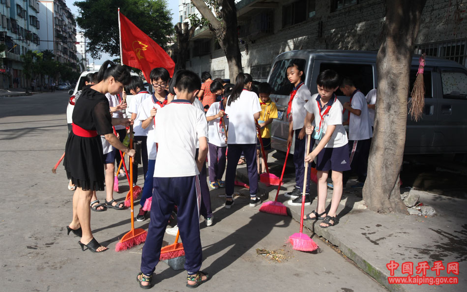 書香校園讀書吧前,學校為各個年級獲得“書香家庭”稱號的66個家庭頒發證書,鼓勵青少年和家長同閱讀,共呼吸,徜徉書海吸取養分,構建學習型家庭;班級教室里,四年級“文明出行,禮貌待人”和六年級“畫出我心目中的文明城市”主題班會氣氛熱烈,學生以各種形式展示“文明”,描繪“文明”;體育操場中,學生和家長或跳健康舞,或踢毽子,或跳繩,其樂融融;校外街道上,五(2)班組織全班同學拿著掃帚、垃圾鏟上街清掃商鋪門前的道路,歲被塵土飛揚嗆得流眼淚,卻仍樂在其中,為能貢獻力量心生歡喜。