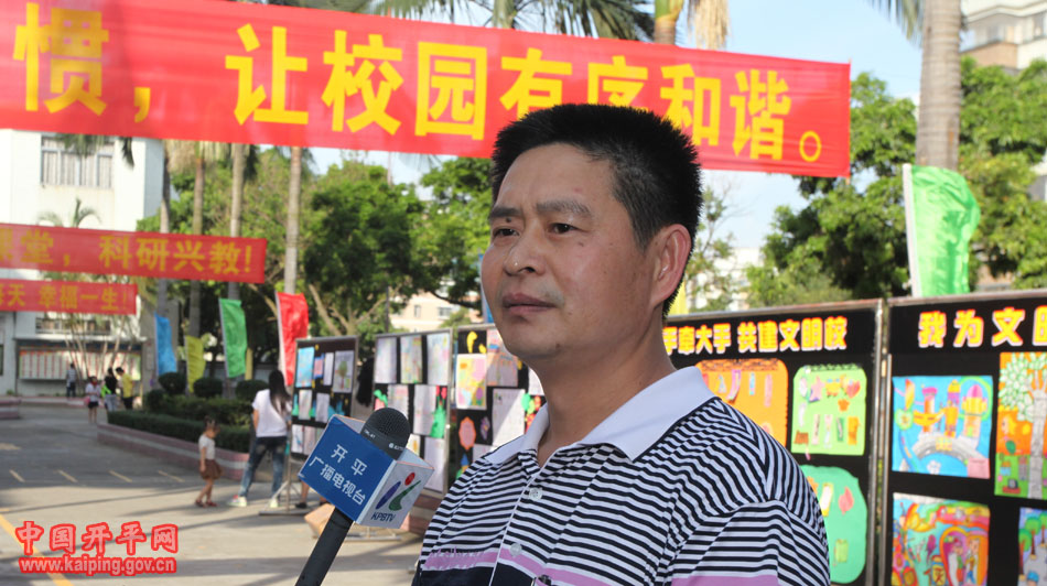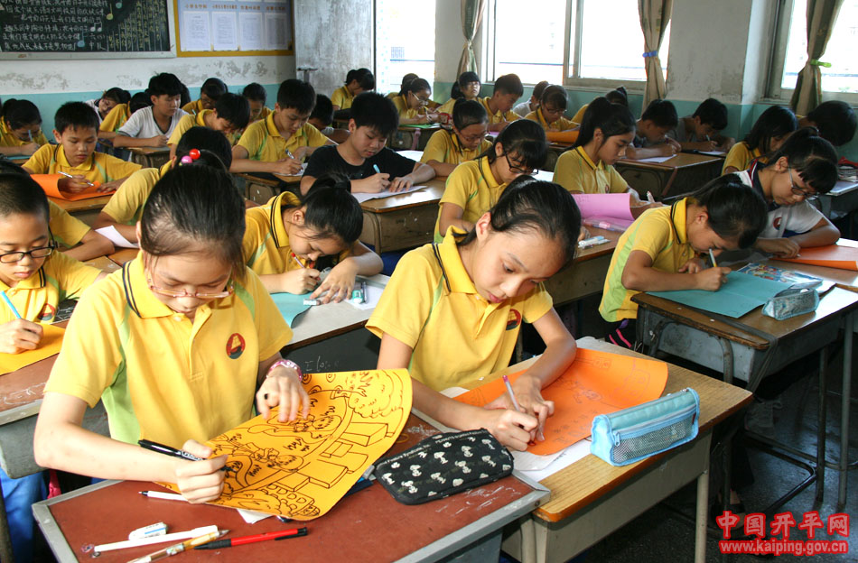 今年5月底,港口小學組織學生參加三埠辦事處慶祝“六一”兒童節千人繪畫迎創文活動,學生和家長在校園內參觀展板時能看到他們的作品。據美術老師莫迪鷗介紹,在活動中,學生們通過作品的展示,繪畫出對文明城市的向往與愿望:文明城市是綠色的城市,是宜居的城市,有著藍天碧水。莫迪鷗說:“在畫中,我們原有的一些陋習,如行人亂穿馬路,公共場所吸煙,喝酒開車等等,在小丑機器的變幻下,在我們愛心攜手共建下,都變得文明守法,和平友愛了。”