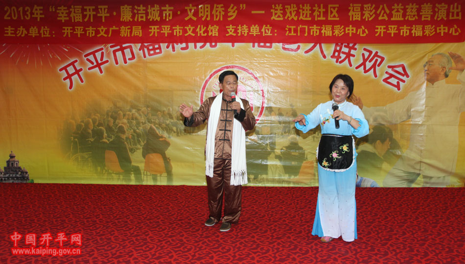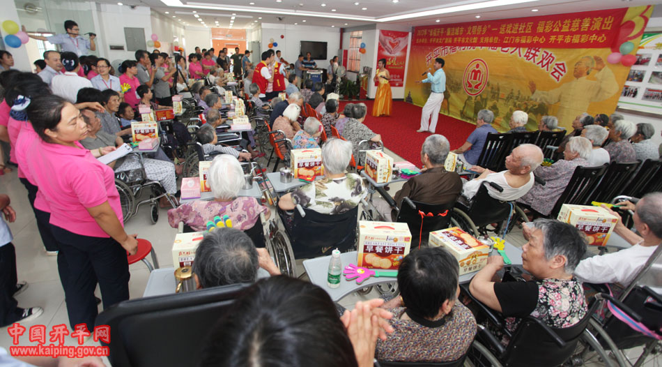 5月31日下午,開平市文廣新局、市文化館聯合市義工聯、江門市福利彩票發行中心到開平市福利院舉辦“幸福開平?廉潔城市?文明僑鄉”——文化進社區活動,豐富老人的文化娛樂生活,倡導敬老愛老的文明之風。