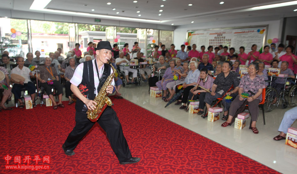活動中,市文藝工作者為市福利院的老人們送上了器樂合奏《步步高》、《旱天雷》,粵劇折子戲《花好月圓》,小提琴演奏《梁祝》,開平民歌獨唱《敬老愛老新風尚》,薩克斯獨奏《瀟灑走一回》等豐富多彩的文藝節目。現場笑聲連連,掌聲不斷。老人們還不時發出“好”、“演得真好”的稱贊。