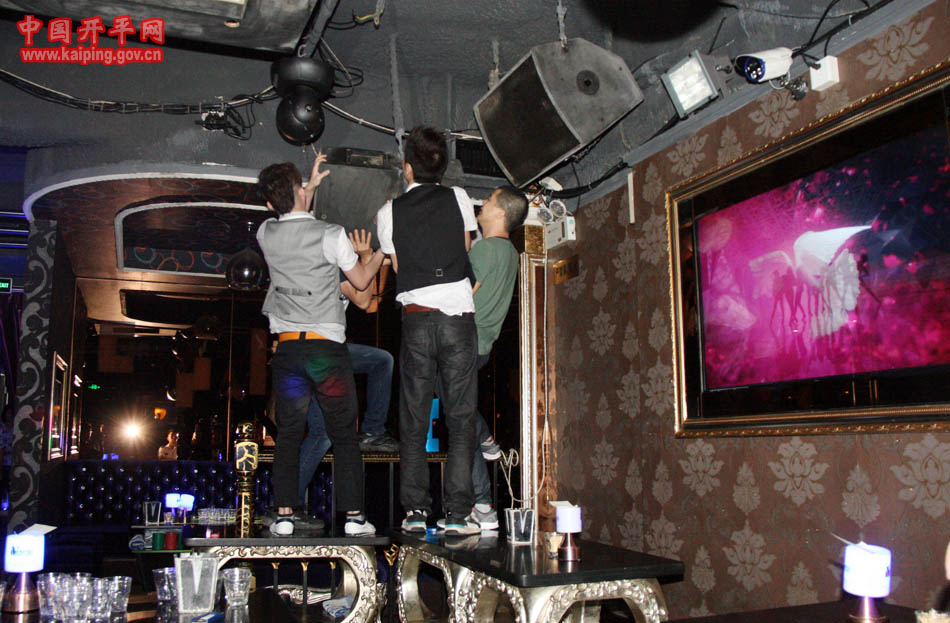 在對曙光東路VAGAS酒吧的檢查中,各部門切實發揮職能作用,認證查看經營者證照是否齊全,消防安全是否符合要求,酒吧內是否存在涉賭等違法行為。執法隊按相關規定,拆除酒吧不符合噪音環保的音響器材,并于現場對酒吧老板進行避免噪音擾民的警告教育。