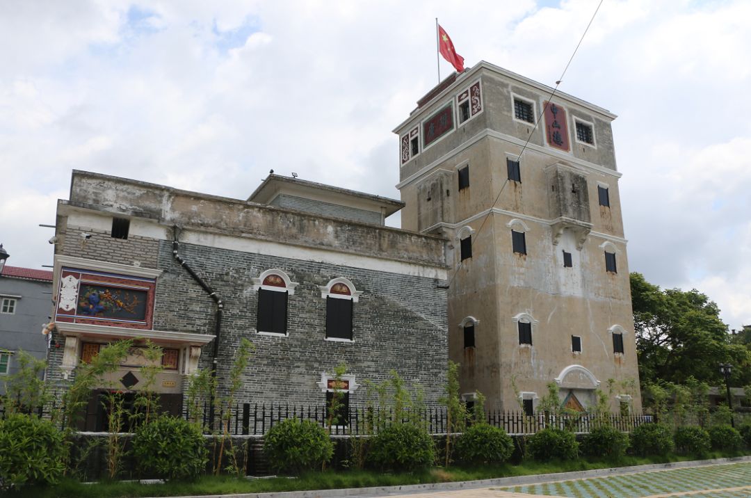 在開平市塘口鎮以敬村慶民里老區村有一座碉樓名為中山樓,是愛國華僑謝創的故居,也是開平黨組織的重要陣地之一。如今,謝創故居已成為著名的紅色教育基地。謝創,(1905—1995),開平市塘口鎮人,1928年加入美國共產黨,1932年轉為中共黨員。曾任中共粵中區特委書記、中共粵中地委副書記、粵中區專員公署專員。