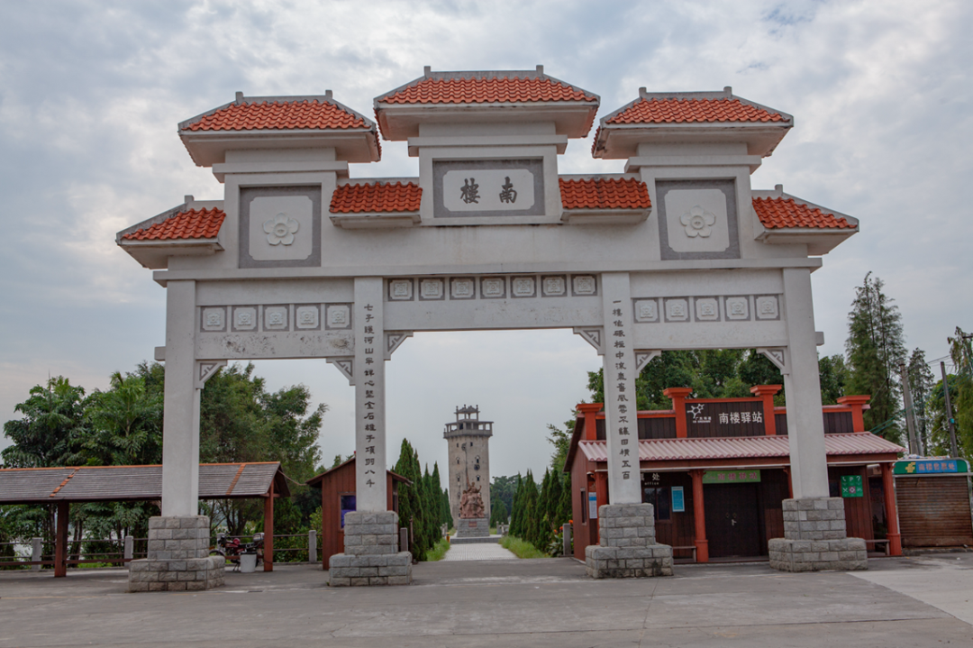 赤坎南樓位于廣東省開平市赤坎鎮南樓村委會騰蛟村潭江北岸,2019年由廣東省人民政府公布為省級文物保護單位。南樓坐北向南,是由赤坎騰蛟村司徒氏華僑、僑眷出資,于1913年在開平潭江北岸邊建成的鄉村防御性建筑。南樓為七層鋼筋混凝土建筑,高19.06米,占地面積28.46平方米,建筑面積180.2平方米,樓門為鐵制,每層開窗并設有槍眼,第六層為瞭望臺。